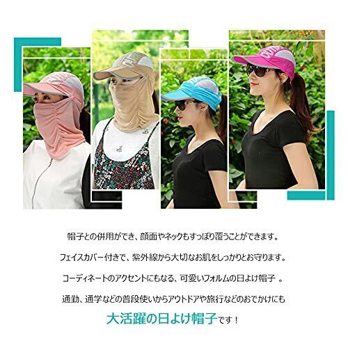 [TS・CORP] 日よけ帽子 息苦しくない UV フェイスカバー ネックカバー 折り畳み 日焼け防止帽子 紫外線対策 レディース キャップ ゴルフ フェイスカバー 付き