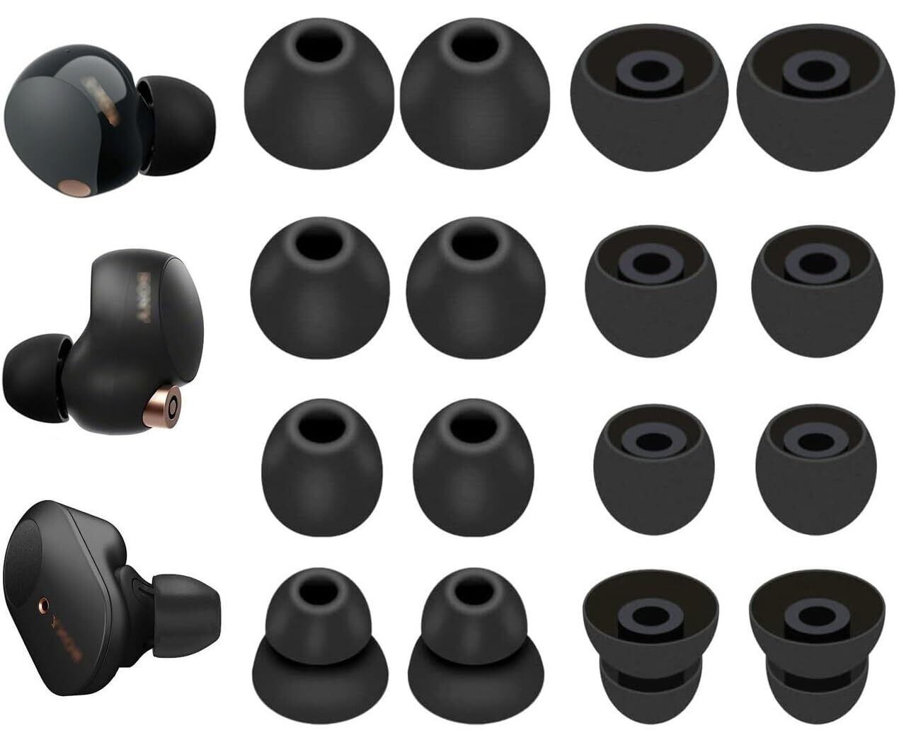 【特価セール】A-Pcas Sony用イヤーピース 1000XM5用イヤーピース 100XM4 用イヤーピース 4サイズ 8ペア シリコン製イヤーチップ イヤーキャップ 快適 フィット感 装着感向上 快適 水洗い可能 XM5/XM4 イヤーピース 【ブラック 4サイズ 8ペア】(23b8p)
