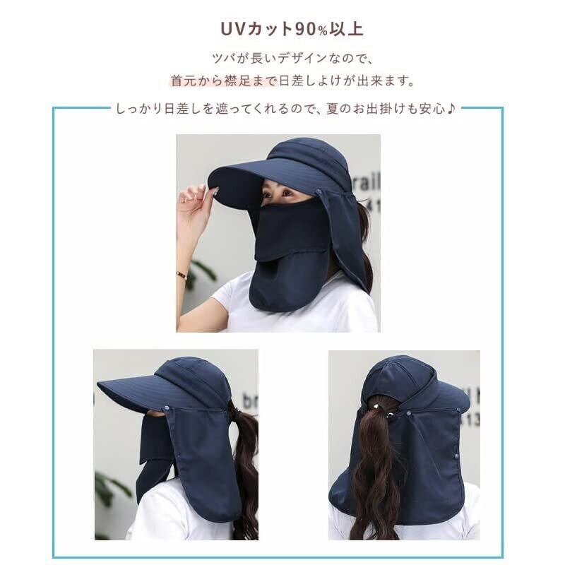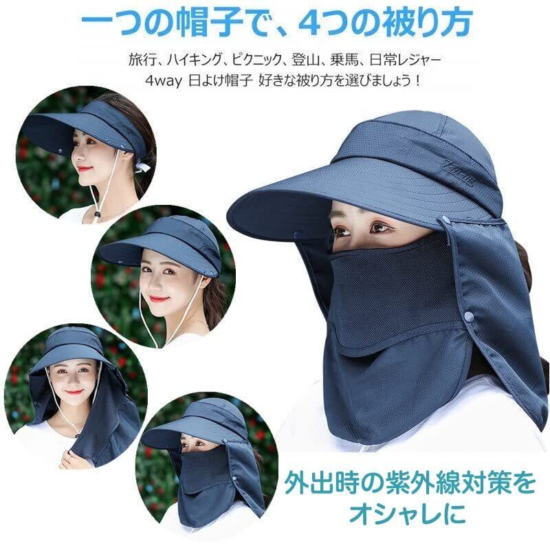帽子 レディース uvカット - UVカット:360度、顔だけでなく頭から首の後ろ部分までしっかりガード! 大きなつば、日除け垂れ、フェイスカバーが日差しをしっかりガード!ファスナー付きだから簡単に帽子上部を取り外しでき、サンバイザーとしても使えます。