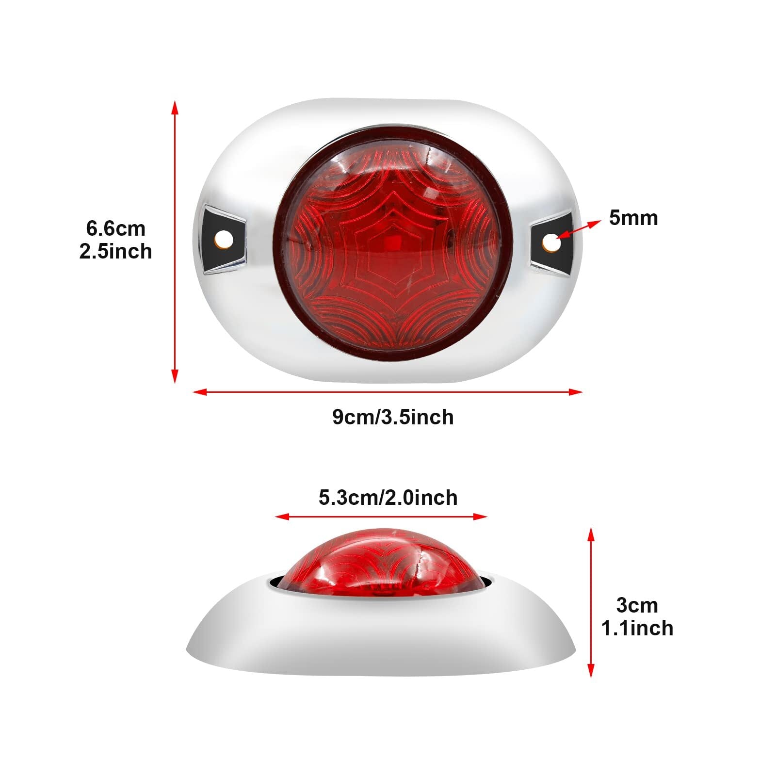 ★「仕様」素材:プラスチック+LED 動作電圧:12V24V 本体色:シルバー レンズカラー:赤 発光色:レッド 配線法:2線接続、赤+黒ー 防水仕様:IP67防水 本体サイズ:画像にてご確認ください