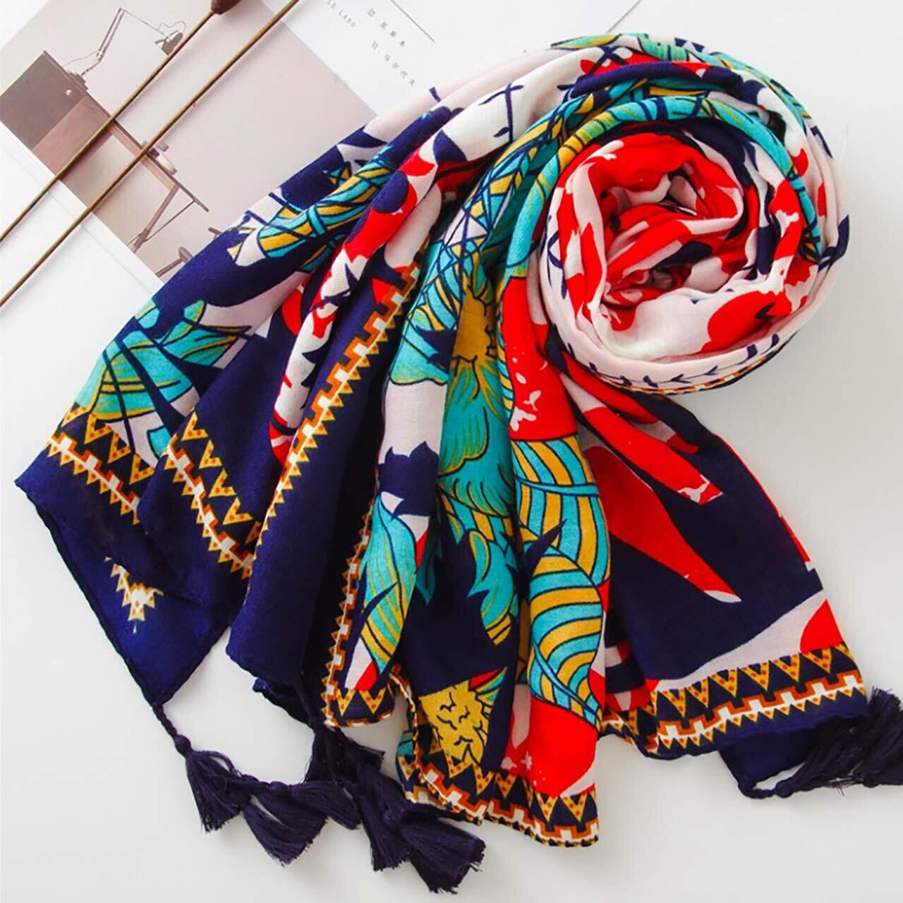 おしゃれな カジュアルファッション フラワー 花柄 ストール 。折りたたみストールの様に使うのも◎ 色々な巻き方で 印象が大きく変わる おしゃれ アイテム。