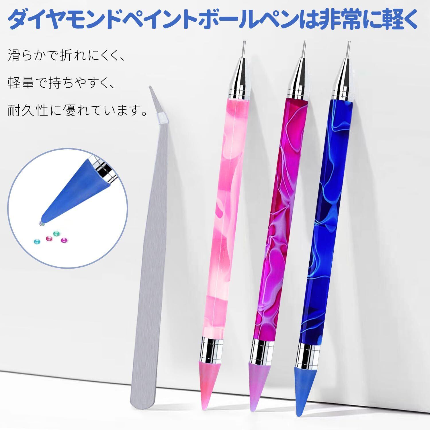 【パッケージ】3色のダイヤモンドペインティング両端ドットペン(ブルー*1+パープル*1+ピンク*1)+1カーブピンセット、ピンセットサイズ仕様は約11.5cmです。両頭のポイントドリルペン、便利で簡単、豊富な内容と実用的なツールは、あなたのネイルアートとDIY絵画工芸の需要を満たすことができます。