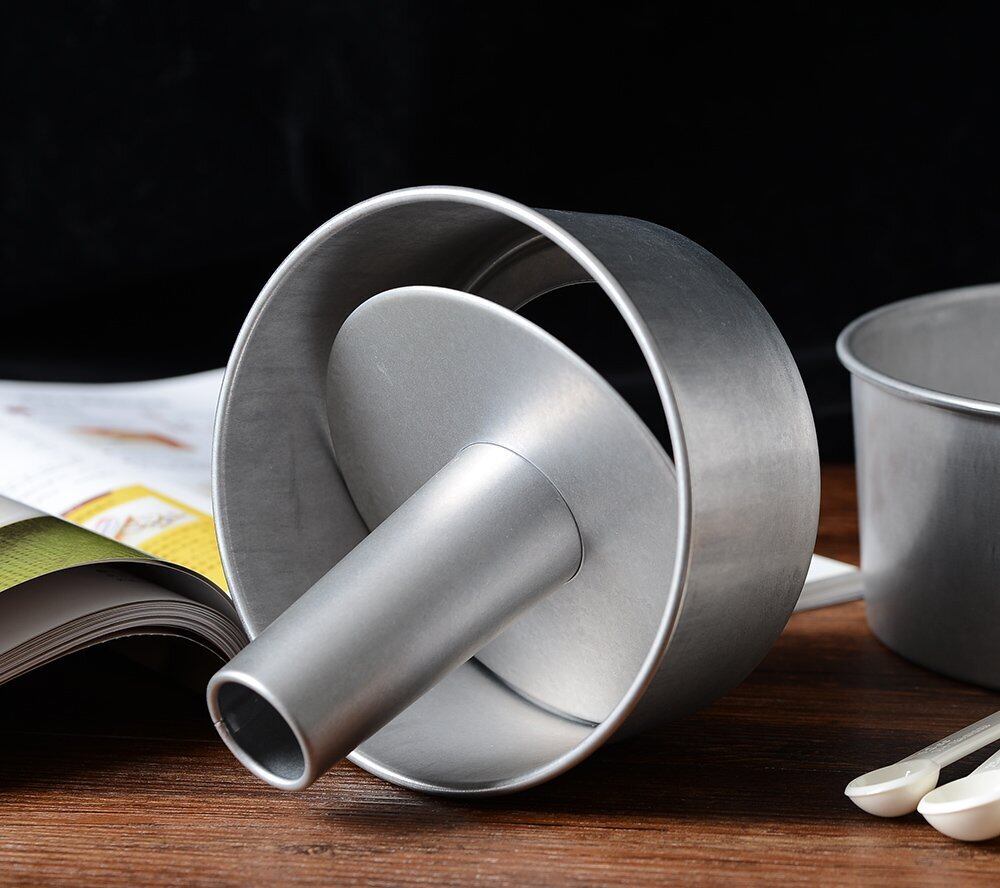 真ん中の円筒は軽い生地を支えて熱の回りを早くしてくれ、高さがあっても均等にムラなく焼き上がります。