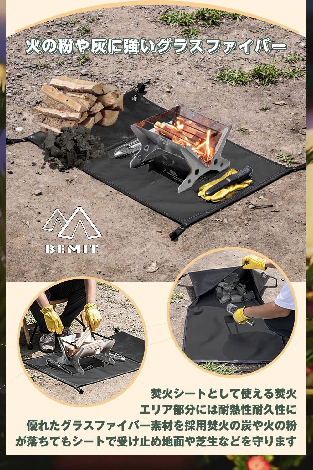 Bemit 火消し袋 キャンプ 焚き火シート 一体型 炭処理袋 炭消し袋 炭袋 耐火 耐熱 防火 シート キャンプ 芝生保護 大容量