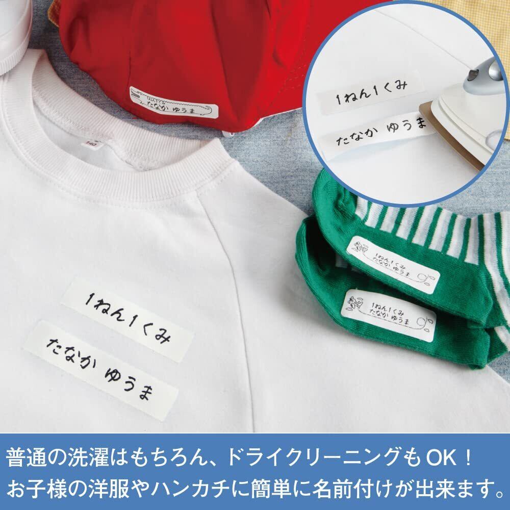 「テプラ」PROシリーズ専用テープ。12mm幅で、アイロンを使ってお子様の衣類やハンカチにお名前が付けられる。