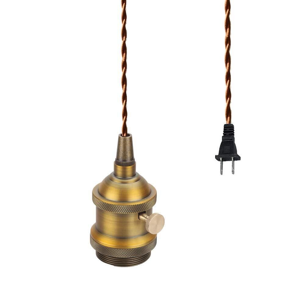 FSLIVING コンセント式 200cm スイッチ付き コード茶 1灯ペンダント レトロ ツイストコード インテリア照明 カフェ LED電球対応 E26