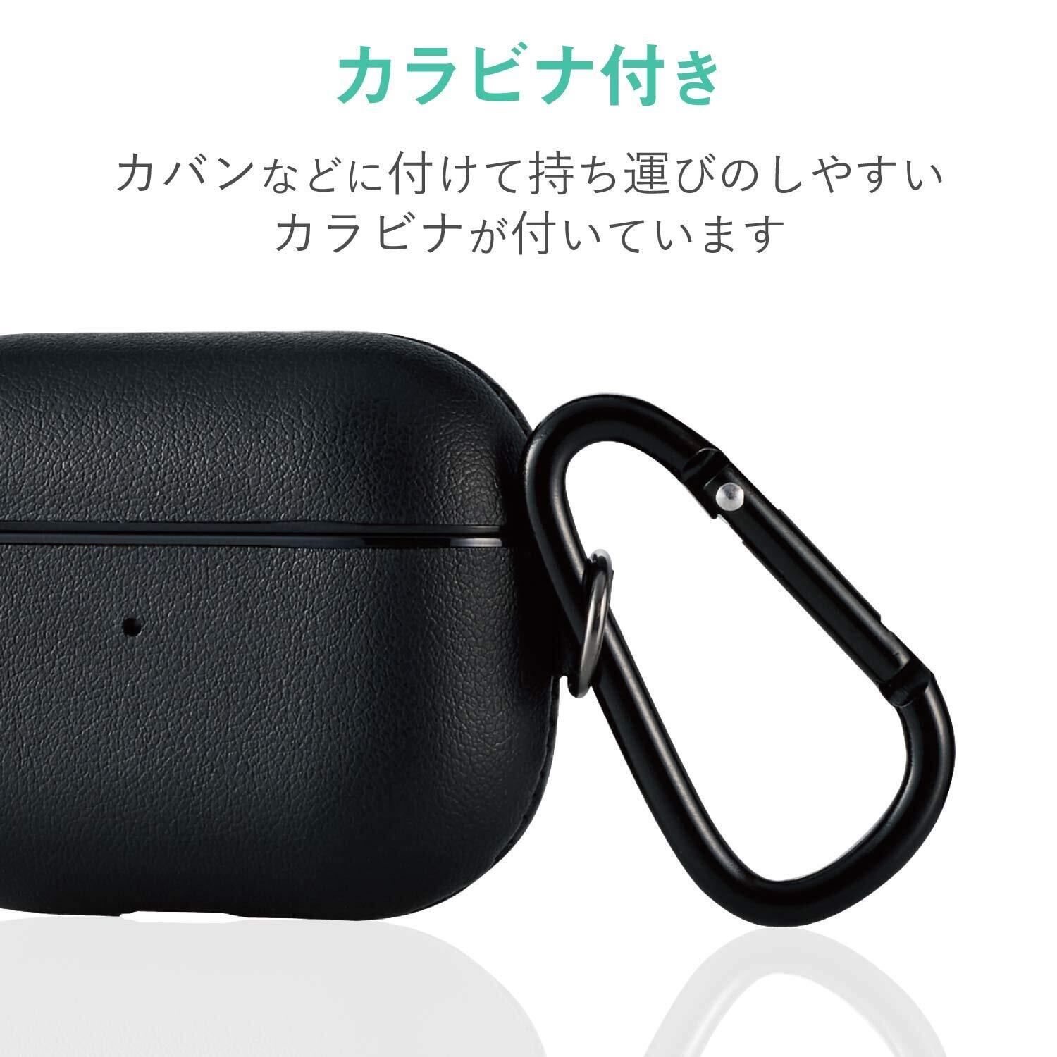 エレコム AirPods Pro ケース ソフトレザーケース 【2019年10月発売モデル】 カラビナ付 ブラック AVA-AP2PLC2BK
