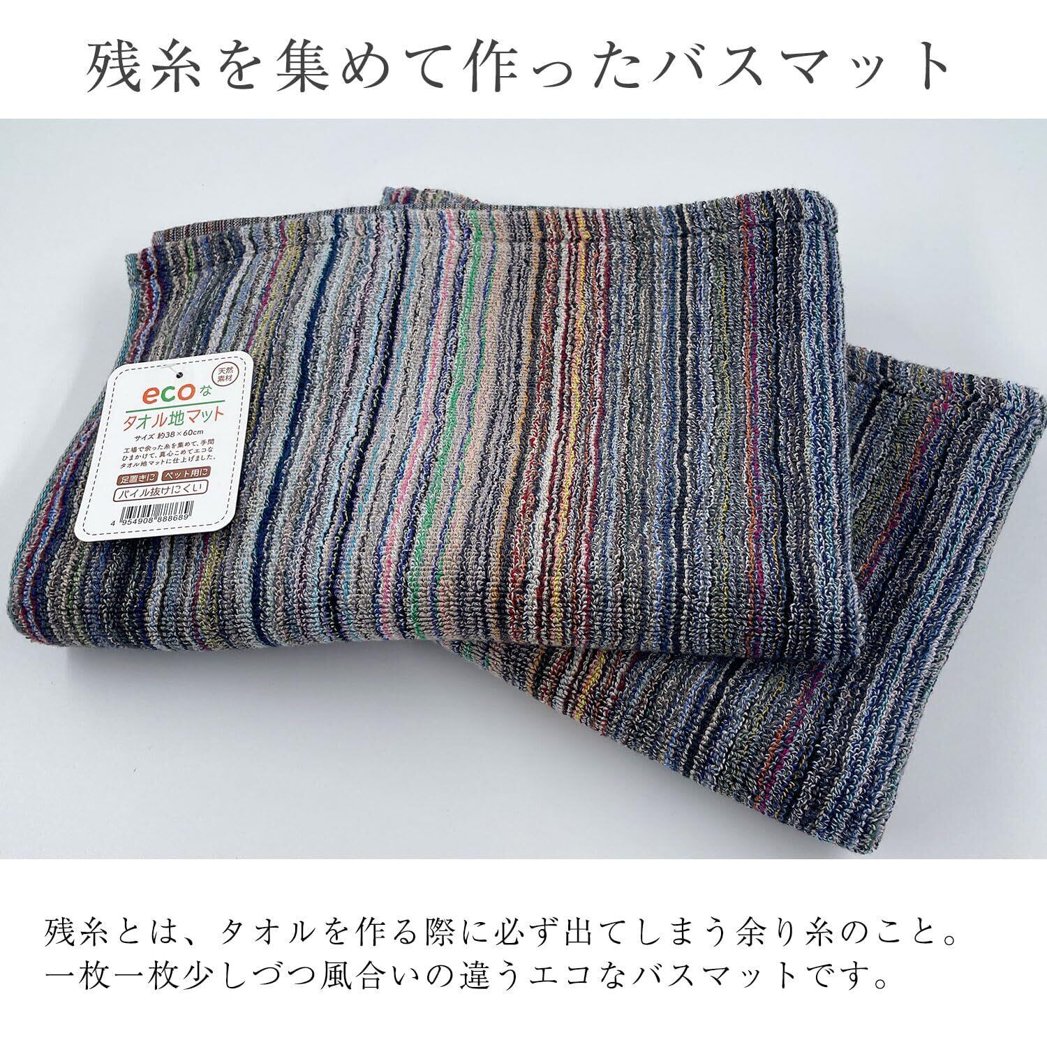 シンプルフレッシュ(Simple Fresh) 【2枚セット】 綿100% 残糸で作ったエコなタオル地バスマット 約38×60cm 残糸 足ふき マット タオル地 バスマット