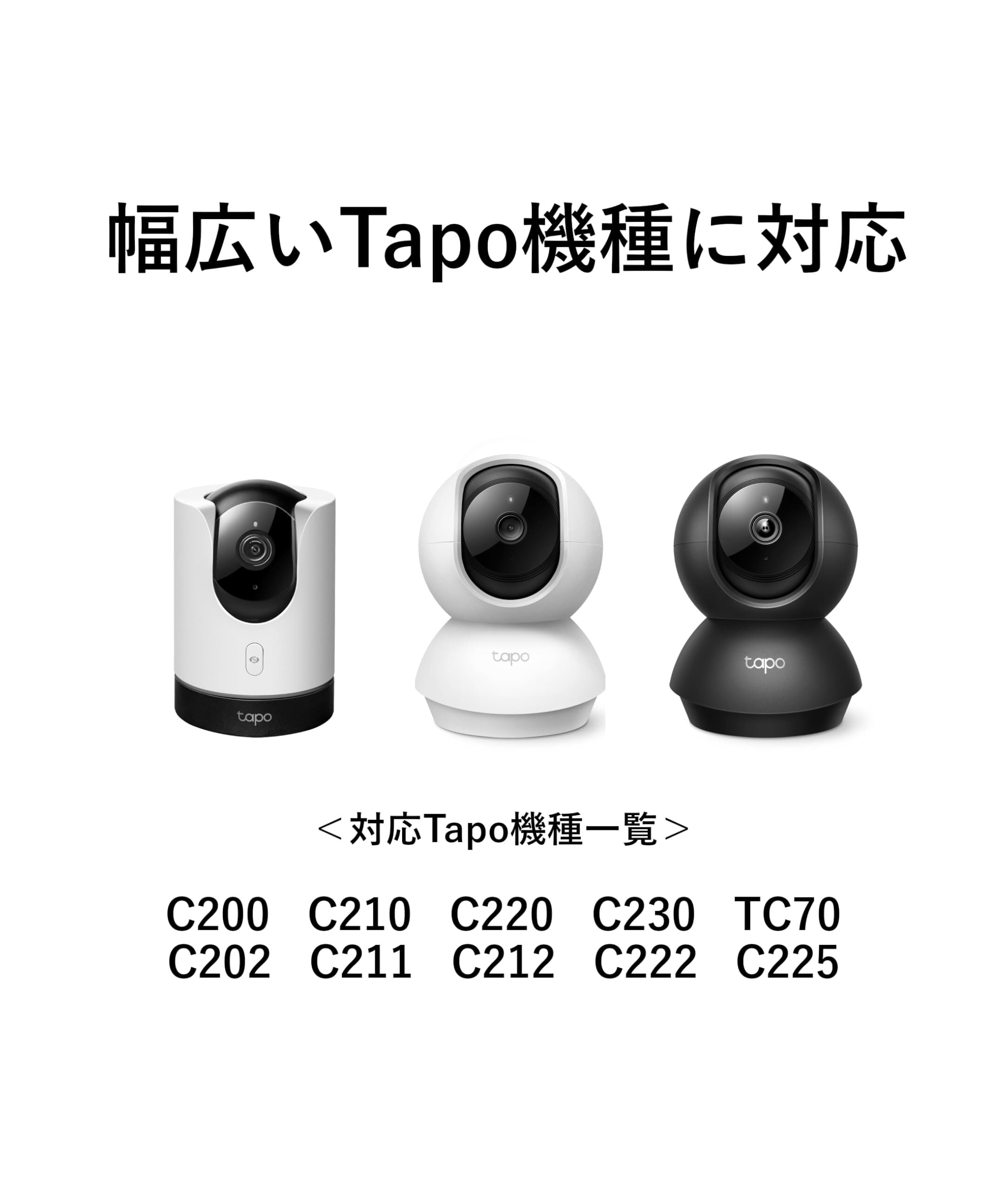 【設置対応機器】Tapo ネットワークカメラ各種: C200 / C202 / C210 / C211 / C212 / C220 / C222 / C225 / C230 / TC70