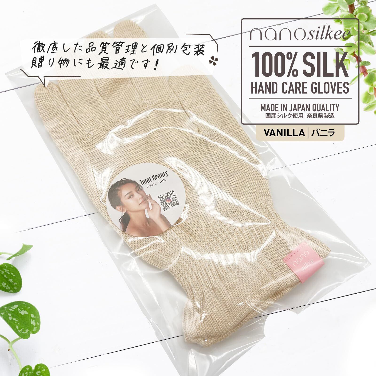 ハンドケア 「匠と美」 シルク手袋 手荒れ UVカット おやすみナイトケア手袋 日本製 nanosilkee × WAKISAKA GLOVES 「朝に潤う手袋」バニラ ハンドクリームの後に UVカット 日焼けケア