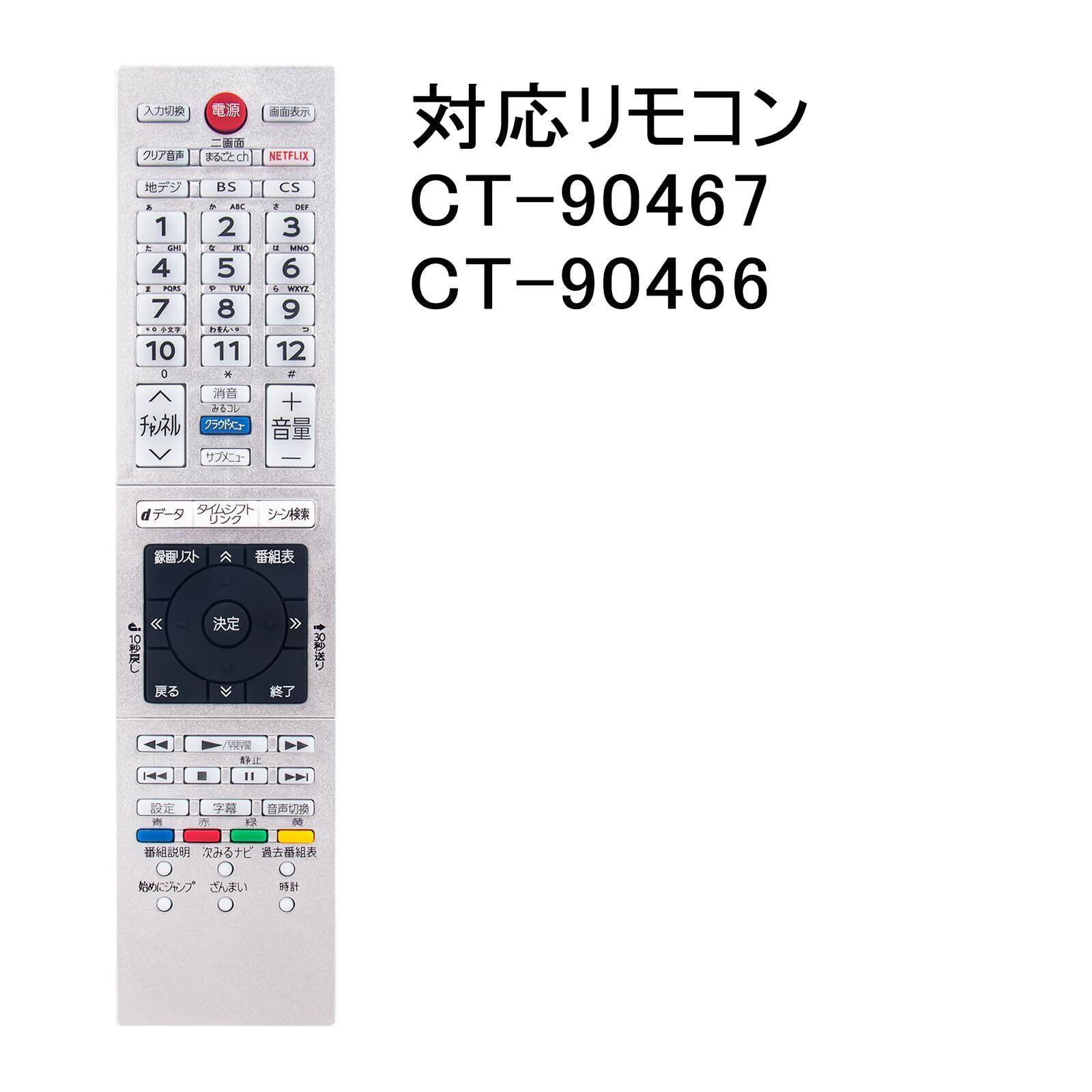 PerFascin 代用リモコン CT-90467 CT-90466 replace for 東芝 Toshiba レグザ regza テレビ 32V30 40V30 32V31 40V31 43G20X 50M500X 58M500X 49G20X 55G20X 40M500X 43C310X 49C310X 43J10 49J10 55J10