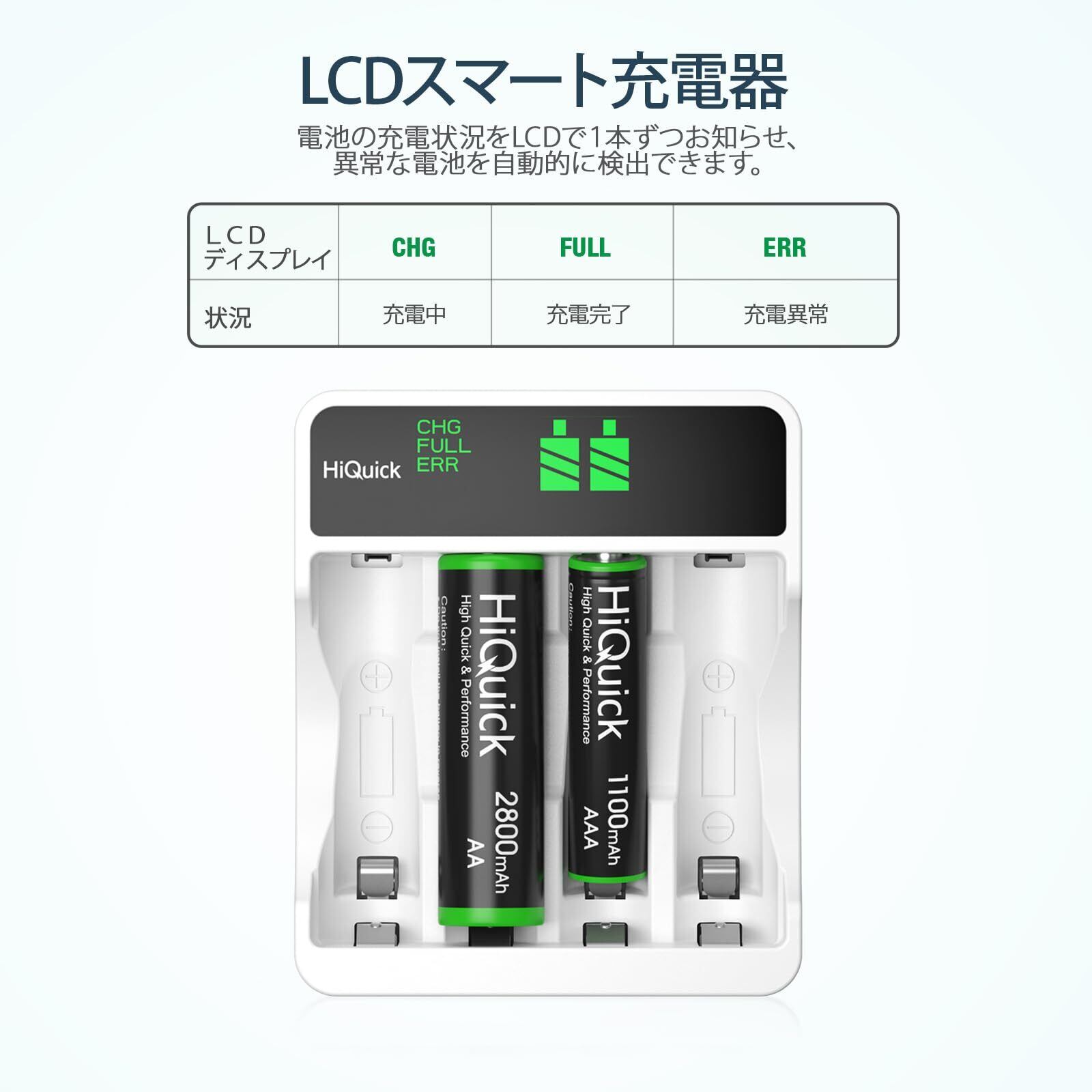 HiQuick 充電池 単3 充電器セット 単4付き 充電池充電器セット(4本単三+4本単四) LCD付き ニッケル水素、ニカドに対応 単4 充電器