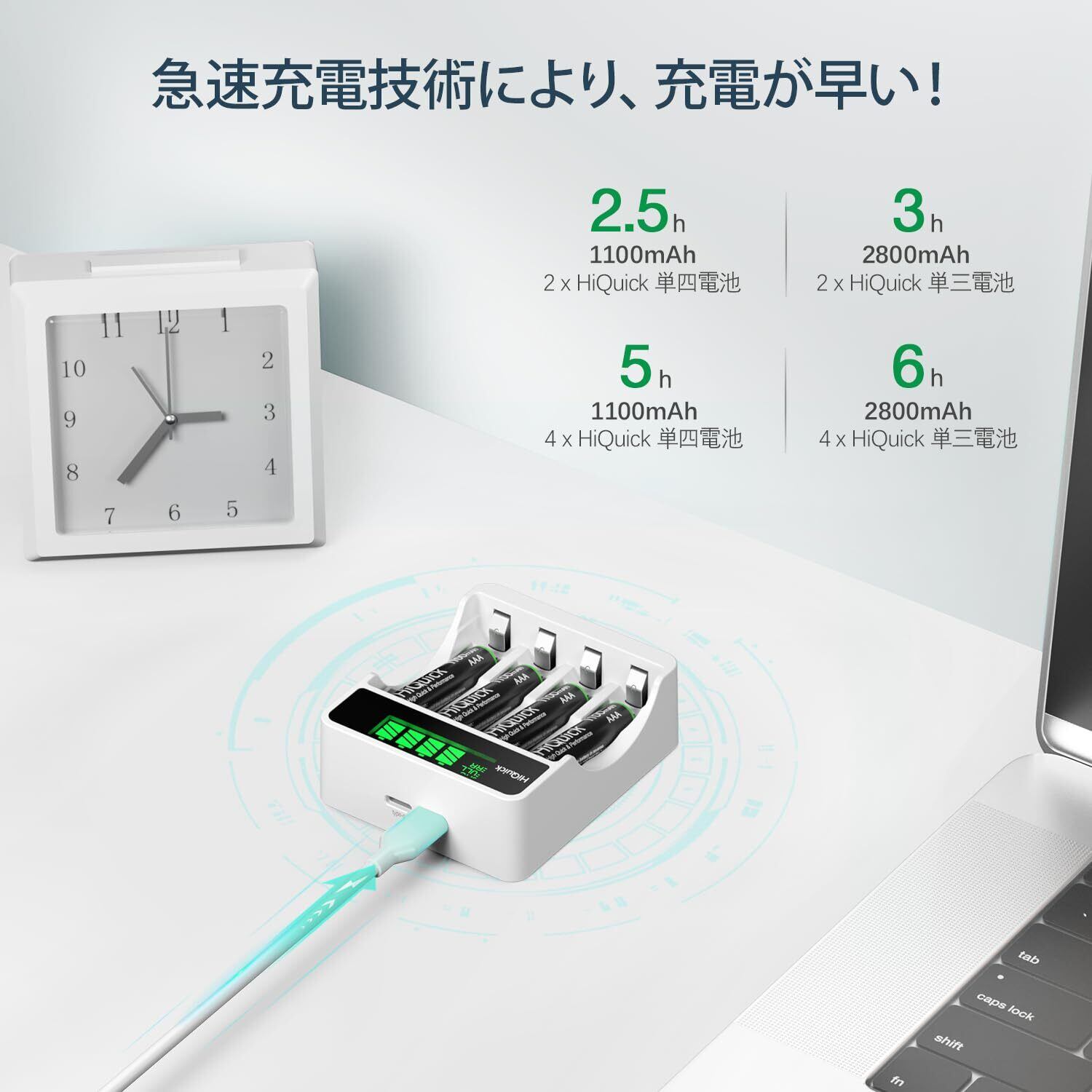 【数量限定】HiQuick 充電池 単3 充電器セット 単4付き 充電池充電器セット(4本単三+4本単四) LCD付き ニッケル水素、ニカドに対応 単4 充電器