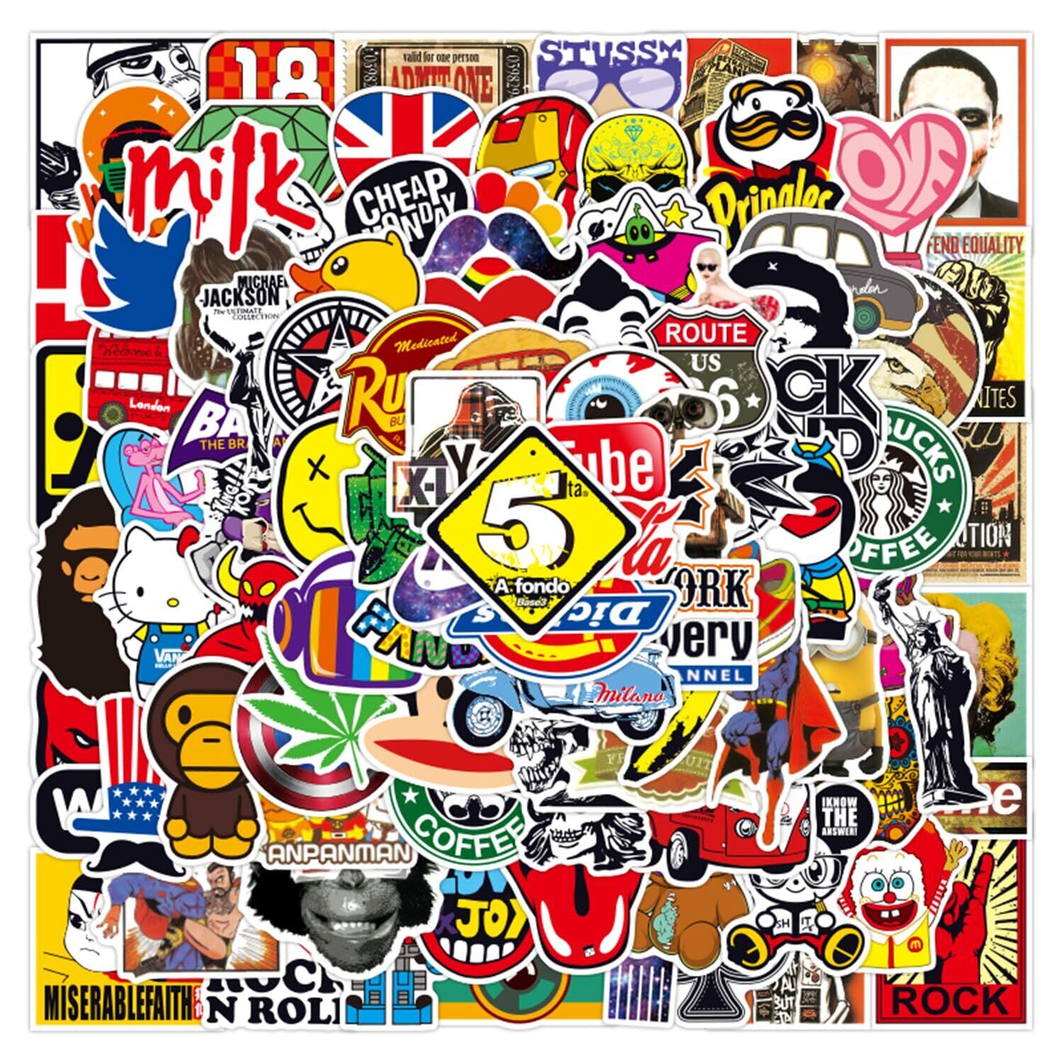 【在庫処分】ステッカー 100枚セット シール 防水 スケートボード ブランド デカール おしゃれ かっこいい 人気 ノートパソコン パソコン スノボ 荷物 スーツケース ギター 水筒 スマホケース スケボー カー 自転車 バイク ヘルメットなど用