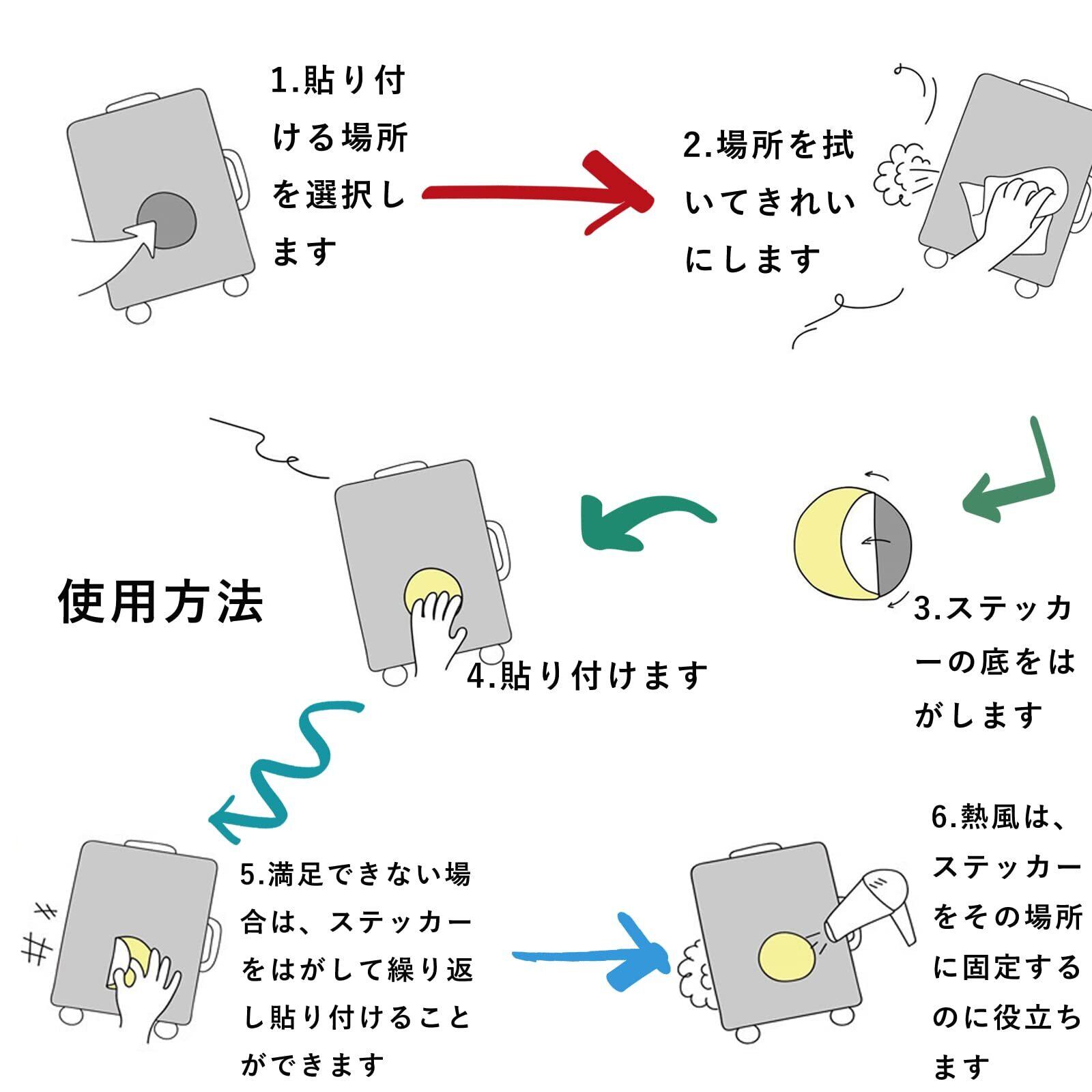 貼り簡単シール:ほこりや水をきれいにし、ステッカーの背面から保護フィルムを取り外し、物体の表面にステッカーを貼り付け、軽く押します。