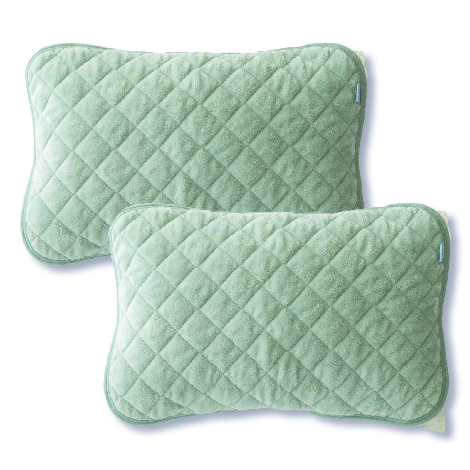 シルフィーズ 枕パッド 2枚組 43×63cm 枕カバー リバーシブル 綿100% タオル地 フランネル オールシーズン あったか 洗える ウォッシャブル ゴム付き グリーン 緑