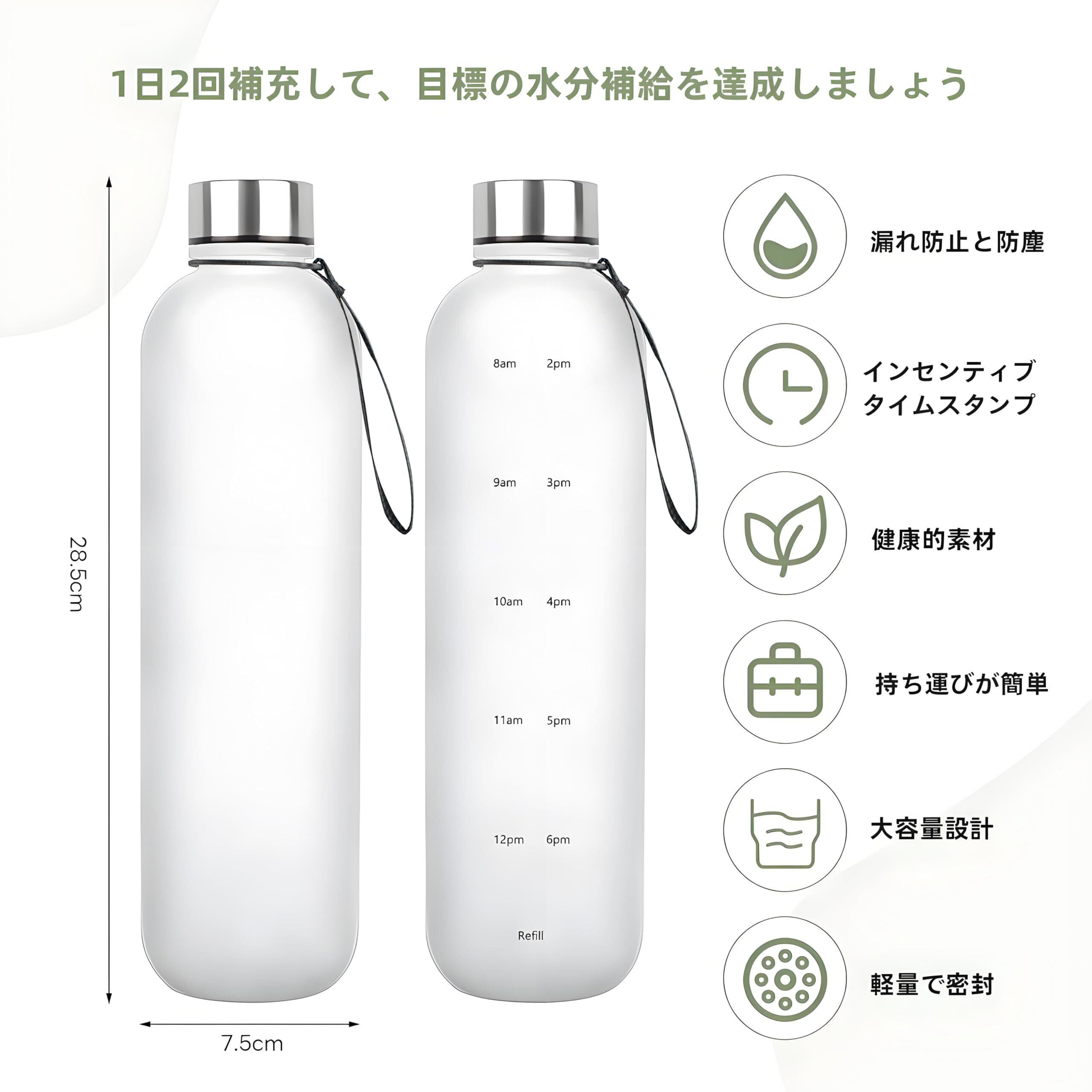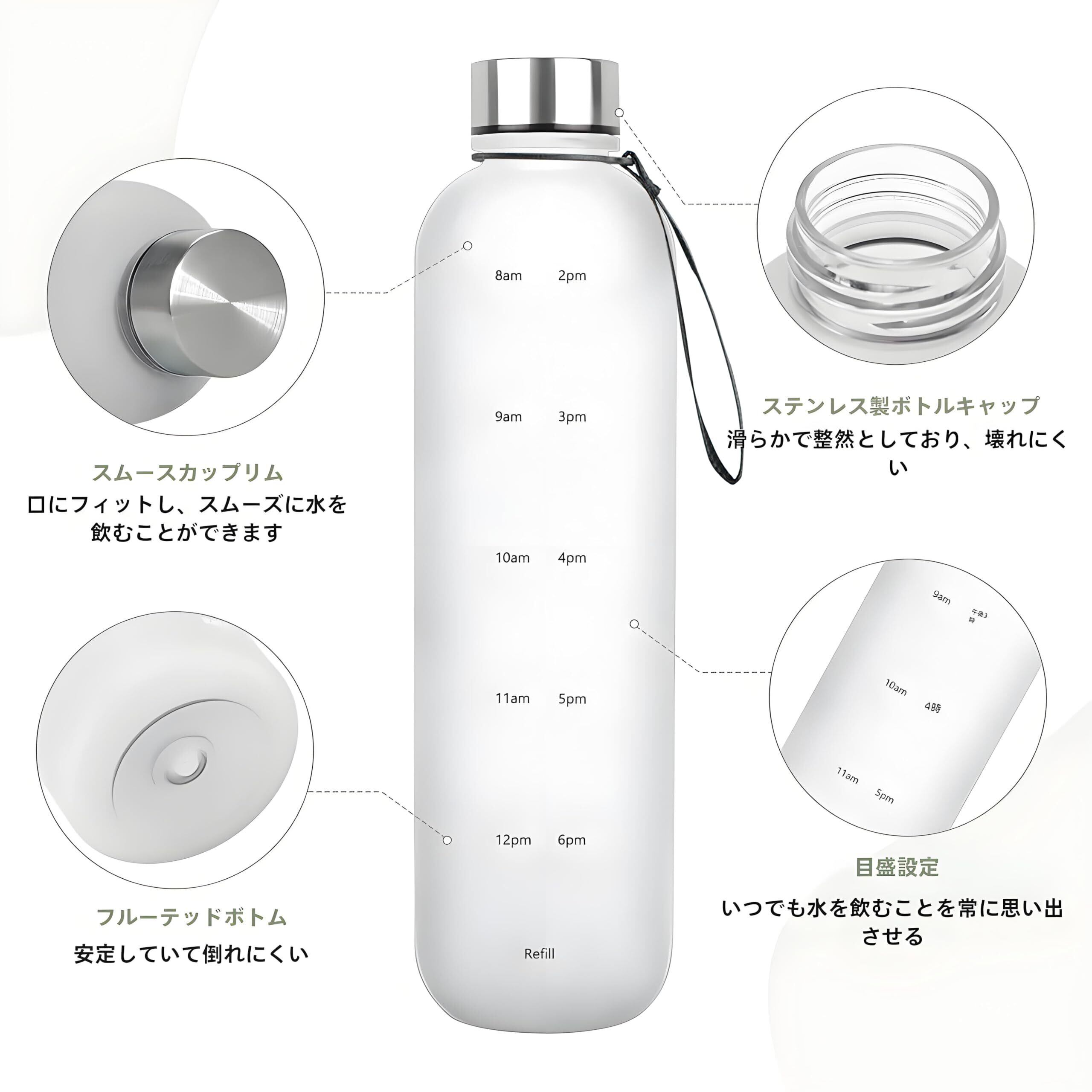 5. ウォーターボトル 1リットル 大容量、サイズ、28.5*7cm、重さ120g。80度以上の熱湯を注ぐことは推奨されない!タイムマーカー付きウォーターボトルを贈って、愛する人をどれだけ大切に思っているかを示して、一日中水分を補給しましょう。MYEEDAすべての製品は厳密に選択されている、何か問題がある場合は、お気軽に私達にメッセージを残して、我々は24時間以内に対処させていただきます!