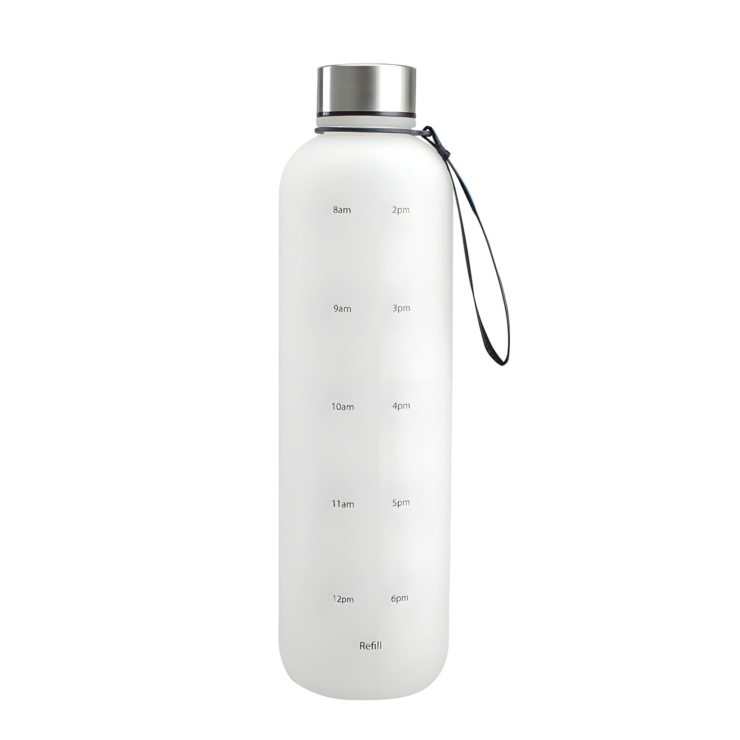 【食品接触対応の樹脂製】MYEEDA 水筒 1リットル ボトル 洗いやすい ウォーターボトル 1000ml 軽量 透明 メモリ付き水筒 男の子 女の子 小学生 BPAフリー プラスチック water bottle 1l 大容量 ドリンク おしゃれ 取っ手付き スポーツボトル 飲んだ量がわかる タイムマーカー付きウォーター 持ち手付き 可愛い クリアボトル 水杯 (ホワイト)