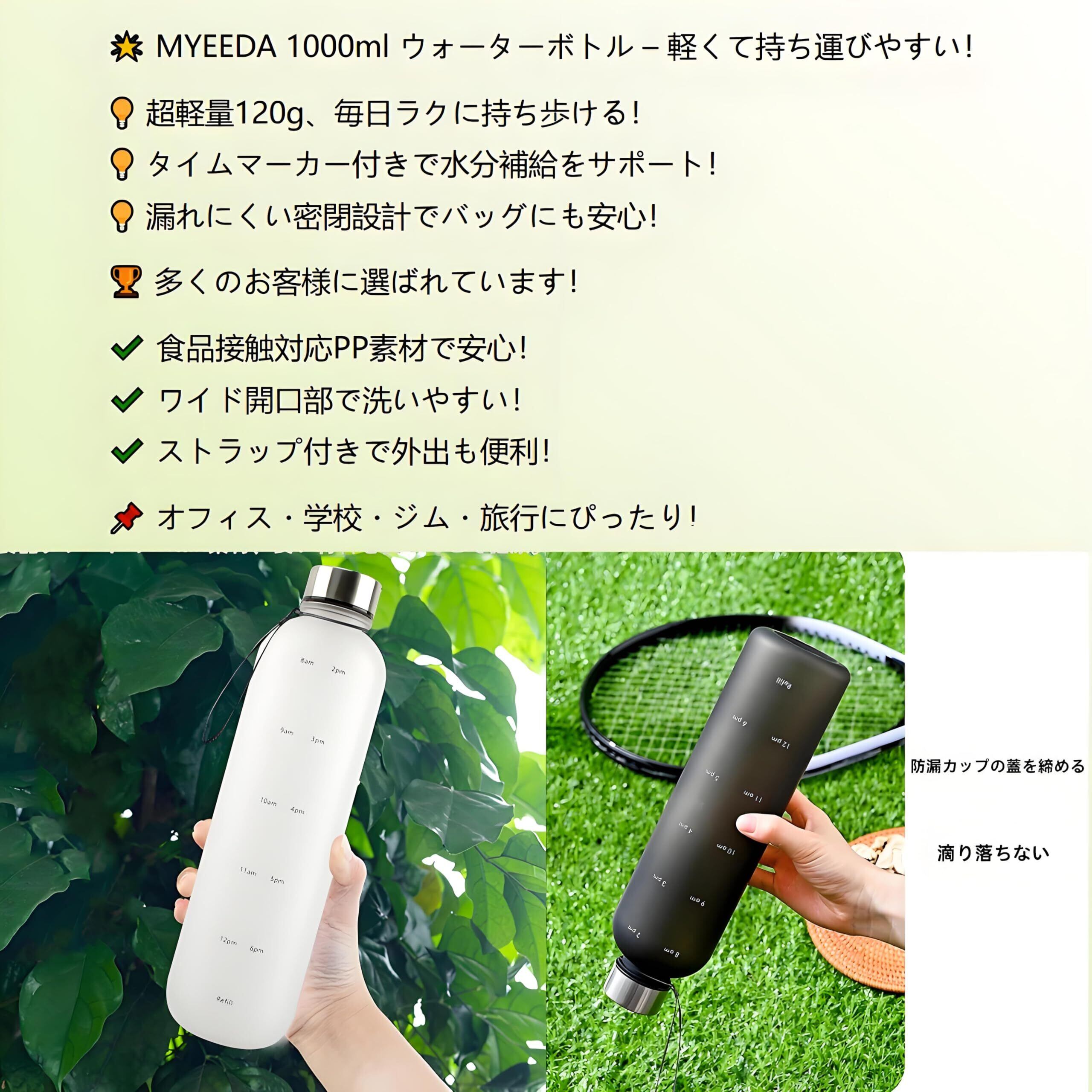 ボトルタイプ MYEEDA ウォーターボトル 1l ボトル 洗いやすい 水筒 1000ml プラスチック water bottle