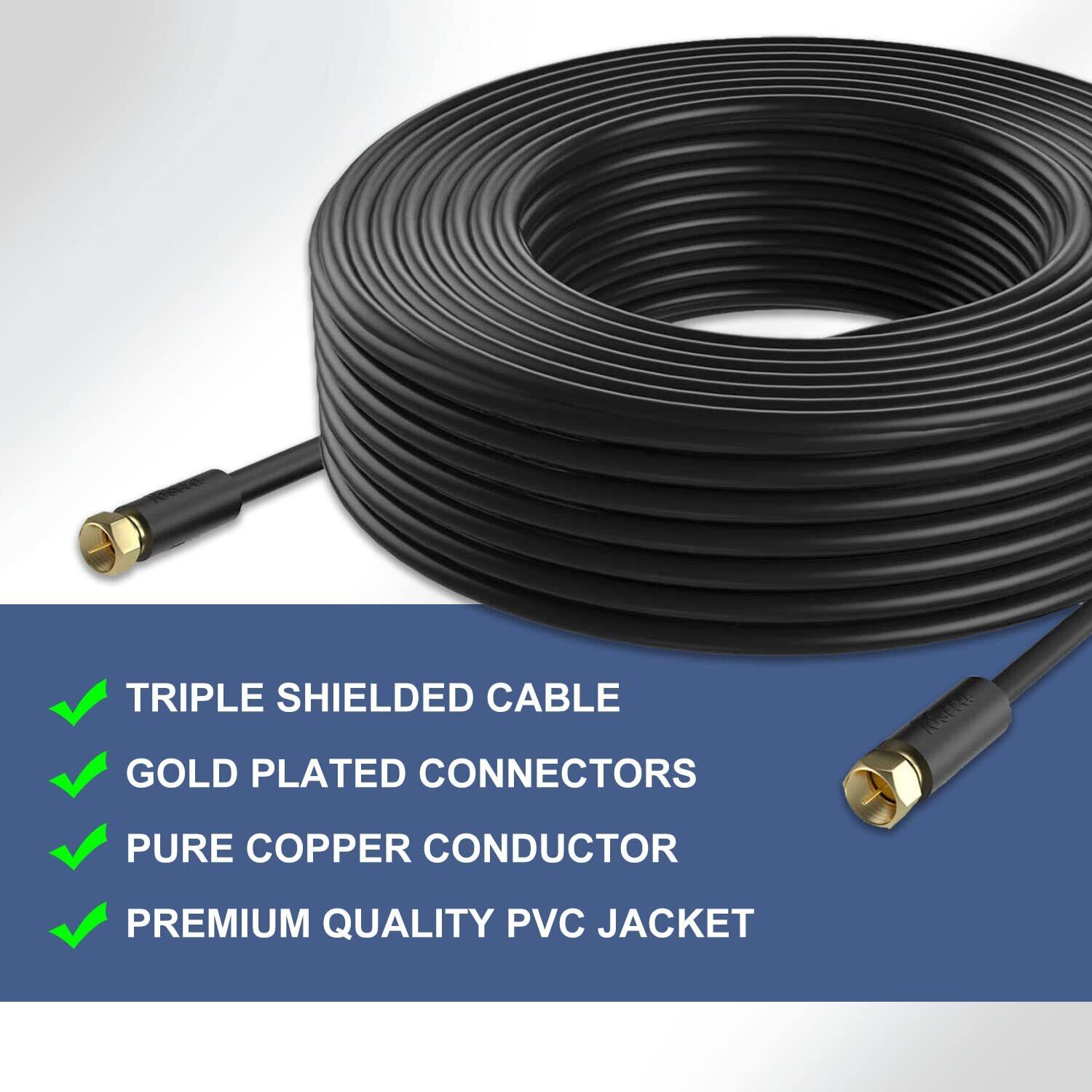 Postta アンテナケーブル 10M 同軸ケーブル S-5C-FB(RG6) 4K8K 地デジ・BS・CS・CATV放送対応 金メッキプラグ F型プラグ ブラック