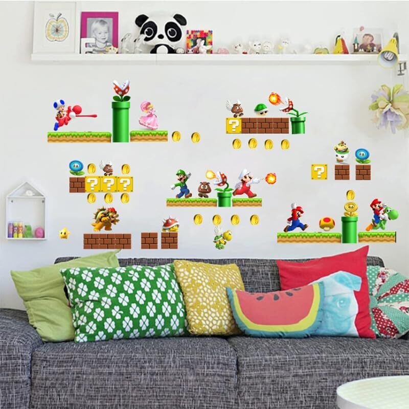 マリオウォールステッカー仕様:レイアウトサイズ:25cm x 35cm * 4枚、完成サイズは写真をご参照ください、お好みに合わせて組み合わせてください、私たちの生活はいつも楽しい色でいっぱいです。