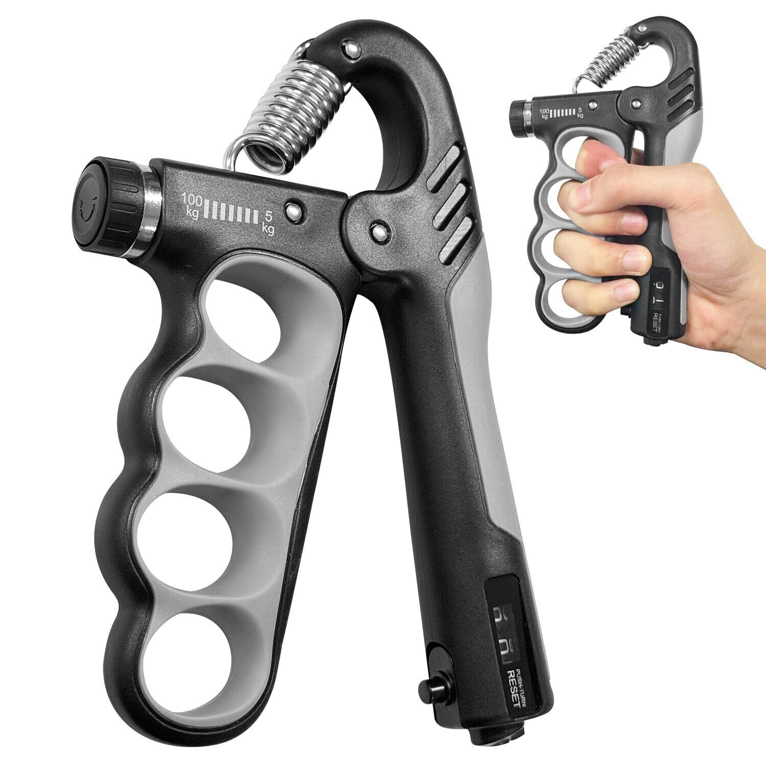 MAHOUYA 握力 トレーニング ハンドグリップ 筋トレグッズ 5-1000kg カウンター付き 負荷調整可能 男女兼用 黑灰色