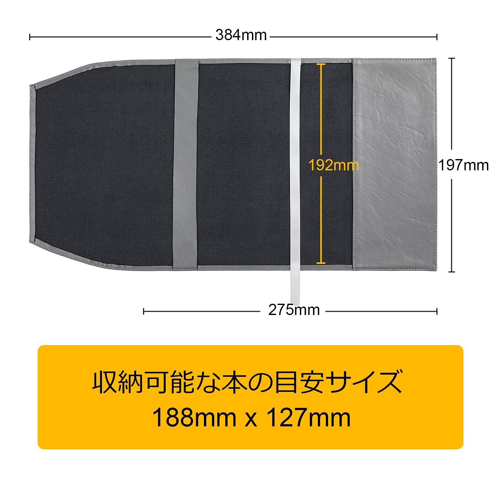 【サイズを調整可能なブックカバーです】片面のサイズは調整可能な仕様です。四六並製本サイズなら対応可能な本のサイズは188mm×127mmです。本の表紙の横の長さは127mmであれば、本の厚さは30mm(約600ぺージ)まで収納できます。もし、表紙の横の長さは127mmより大きければ、収納できる本の厚さは薄くなります。例えば、表紙の横の長さは127mmより2mm大きければ、表表紙と裏表紙は合わせて4mm大きくて、収納できる本の厚さは30mm-4mm=26mmになります。