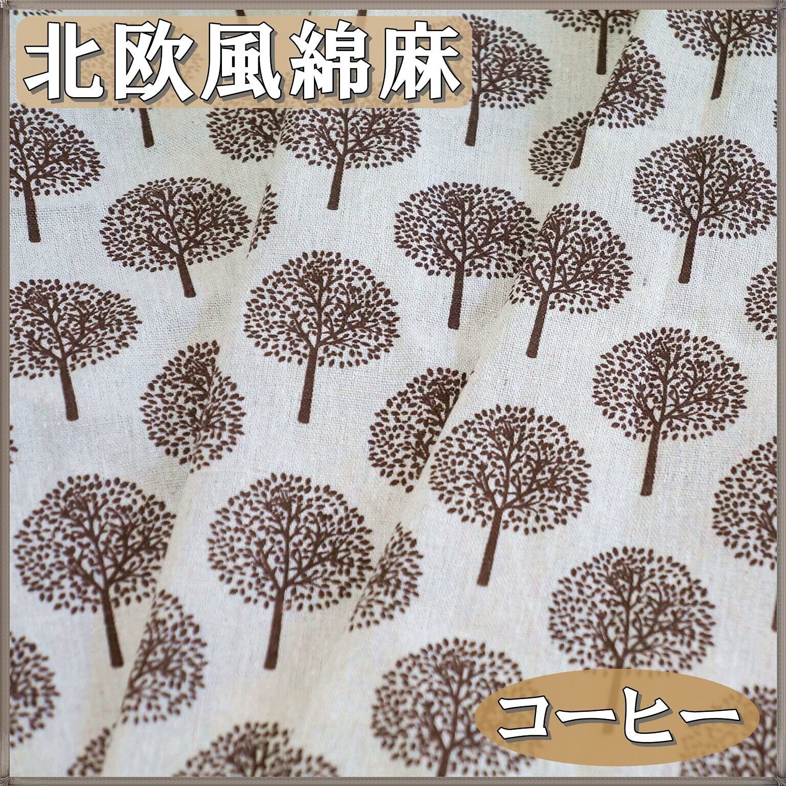 【人気商品】moonfarm 北欧風 ツリー柄 綿麻 生地 選べる3色 長さ約1m 幅約155cm 手芸用 布 裁断済み (コーヒー)