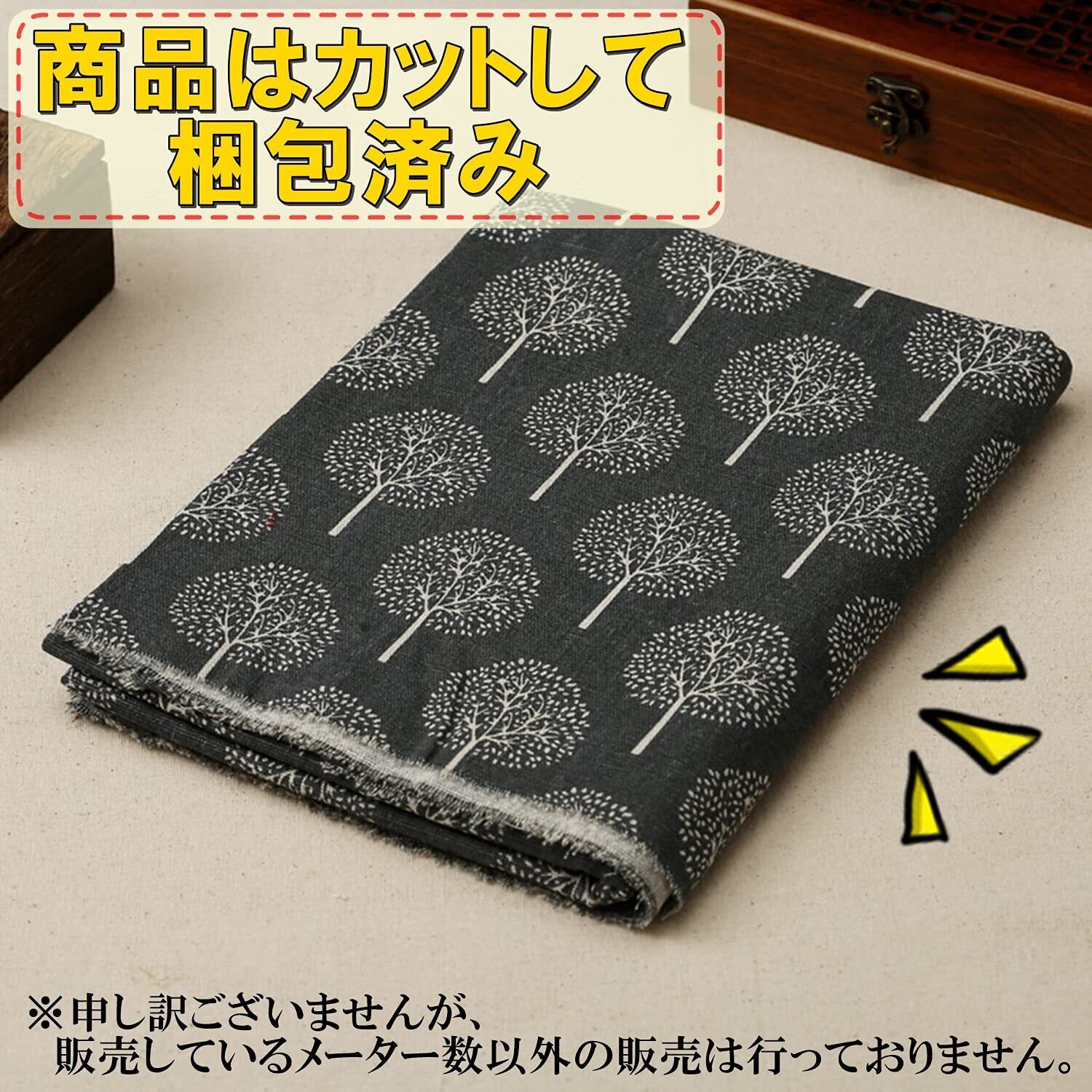 オシャレで人気な北欧風のツリー柄 コットンリネンプリント生地 長さ:約1m×幅1.55m裁断済み 重量:約300g 素材:綿麻(コットンリネン)