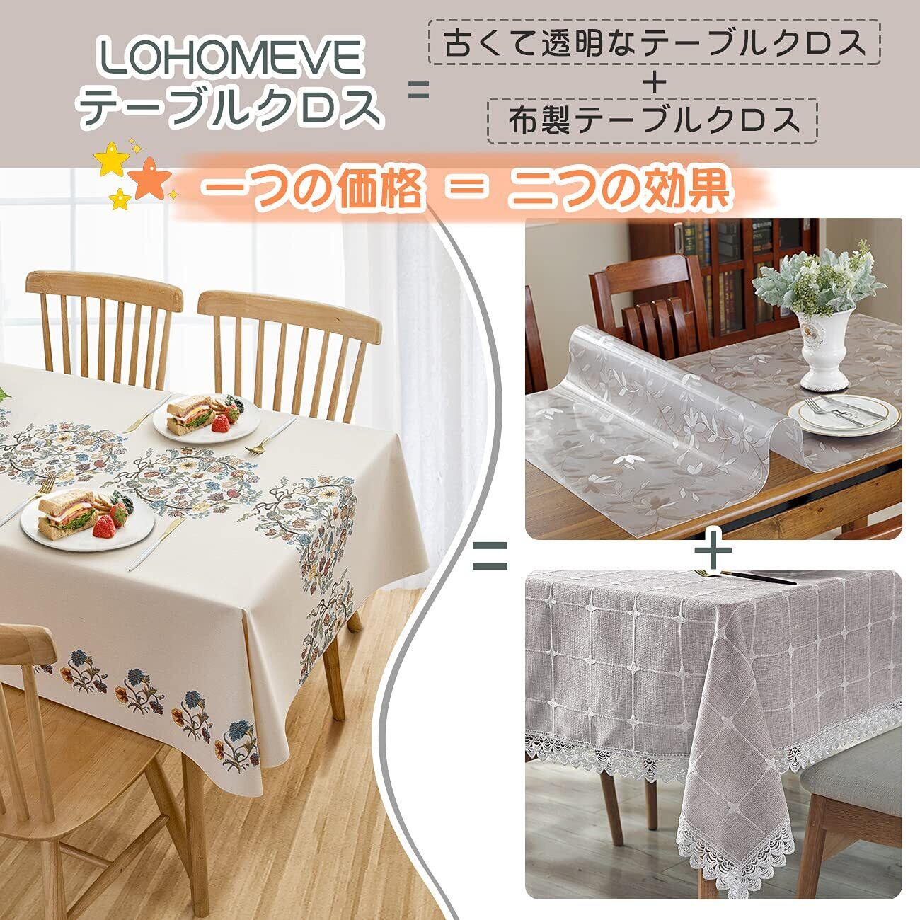 【特価セール】LOHOMEVE テーブルクロス ビニール おしゃれ テーブルカバー 撥水 ?布 正方形 長方形 北欧 汚れ防止 防水 防油 耐熱 pvc製 テーブルマット テーブルランナー カーキー 刺? 140×240CM