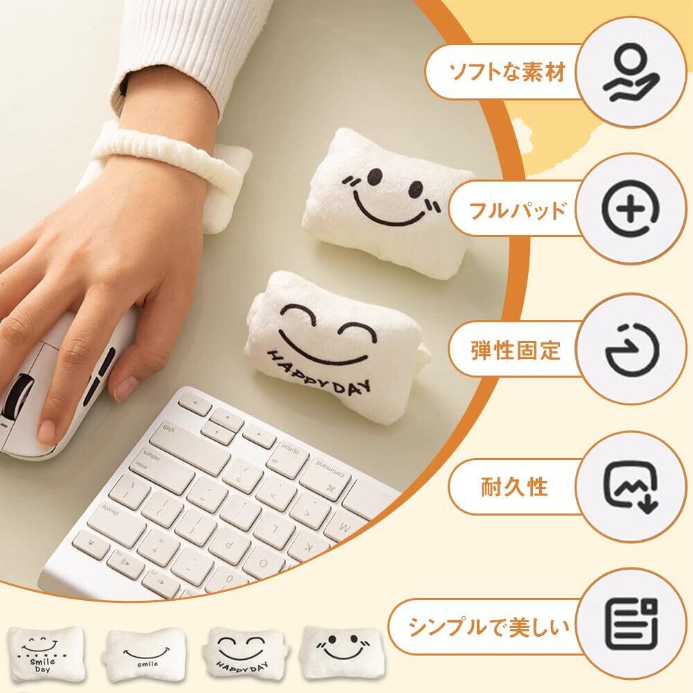 マウス用リストレスト パソコン手首クッション 手首クッション 柔らかいミニハンドレスト 腕置き 可動式リストバンド 通気性 腕置き 小型 軽量 勉強 女性用 オフィス用 教室用 屋外用 ホームオフィス用 4個セット(ホワイト)