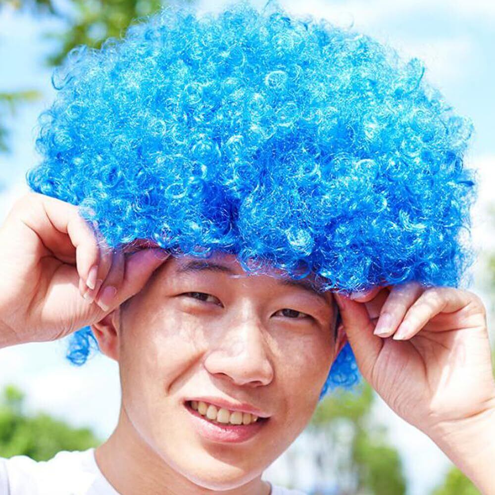 【在庫セール】ボンバー アフロ ウィッグ 男女兼用 コスプレ コスチューム用小物 パーティー ハロウィン仮装 ピエロかつら (青)