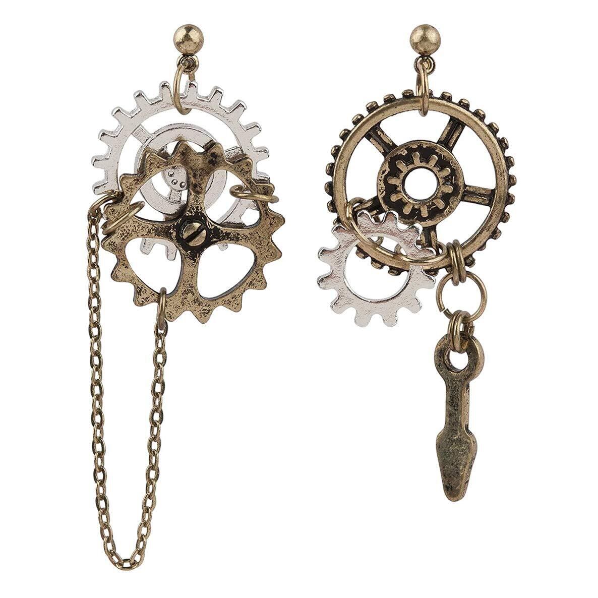 ALOHAMONI (アロハモニ) ヴィンテージ 歯車 ギア モチーフ アシンメトリー ピアス 左右非対称 ゴールド チェーン アンティーク レトロ パンク 韓国 オルチャン レディース メンズ ユニセックス