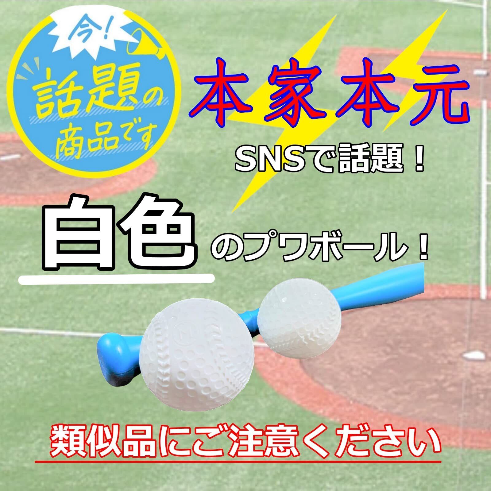 【商品】プワボール 2個入り (「変化球の握り方」チラシ付属)。SNSや動画サイトで話題の変化球が投げられるボールです。 室内、室外を問わずお楽しみいただけます。少し練習が必要ですが、カーブ、スライダー、フォークボール等、自由自在に投げられます♪ 空気が抜けやすいので空気をたくさん入れてお送りします。そのため、少し大きめのボールサイズとなっています。お子様とのキャッチボールにも最適です♪ ※写真のバットは付属いたしませんのでご注意ください