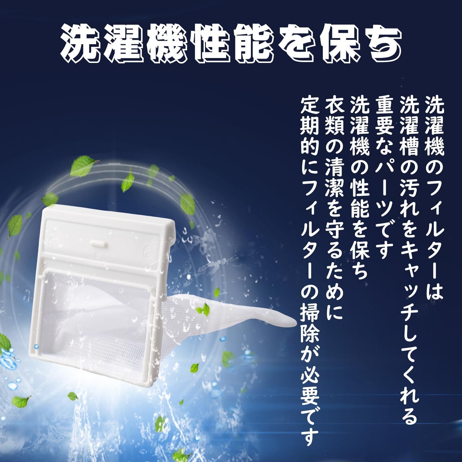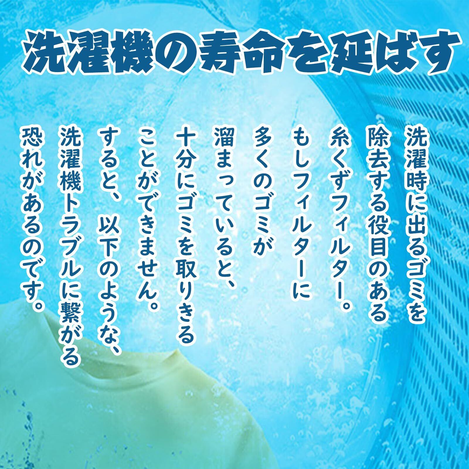 【高性能 ・ 高品質フィルター】耐久性のあるマイクロファイバー素材で作られており、長期間の使用にも耐えられます。高い性能を持って、洗濯中に発生した糸くずやゴミを効果的に捕集られます。洗濯機の糸くずフィルターは洗濯槽の汚れをキャッチしてくれる重要なパーツです。洗濯機の性能を保ち、衣類の清潔を守るために定期的に取り替えが必要あります。
