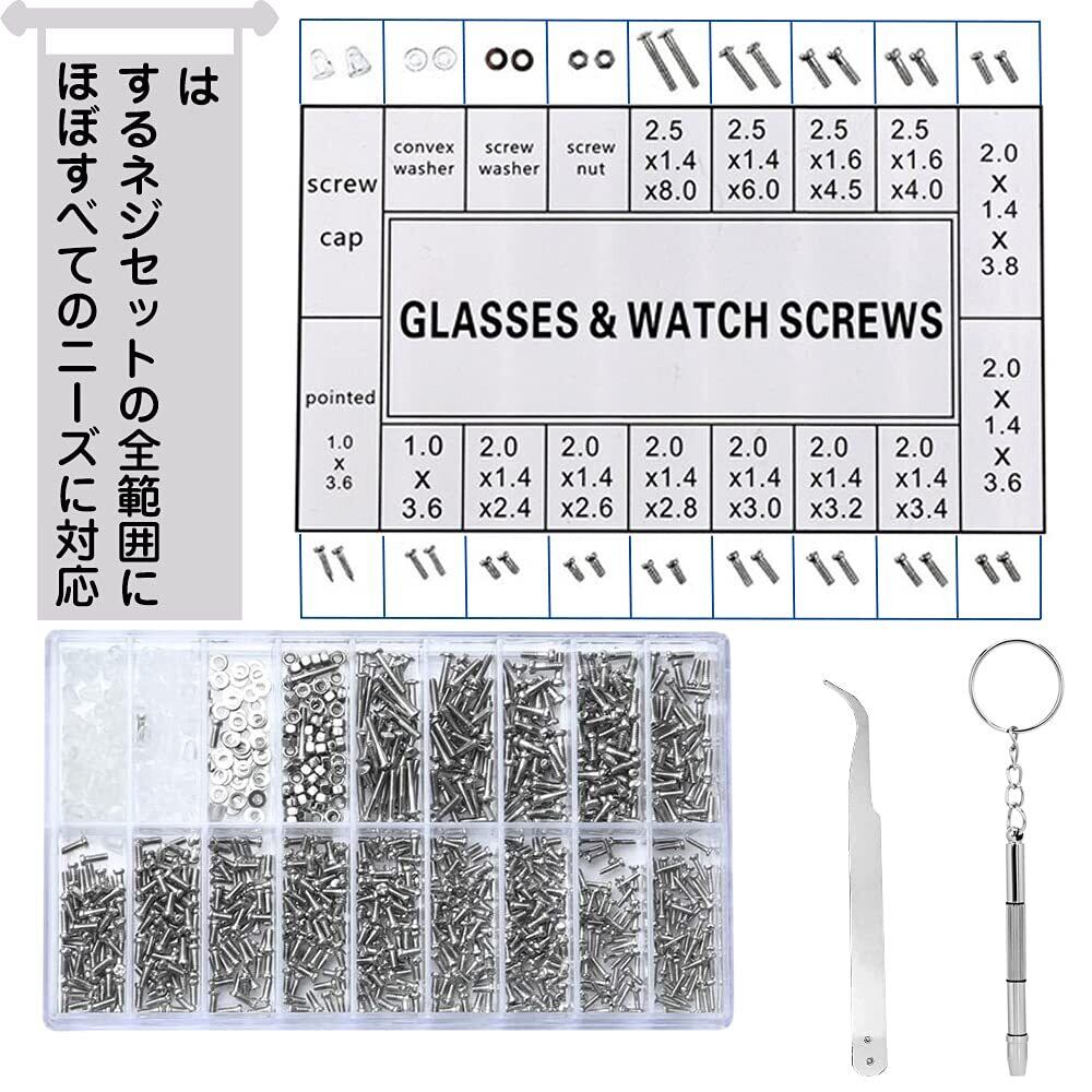 小ネジキット ステンレス 小ネジ パーツ ナット 小ネジセット ネジの交換 修理キット メガネ修理 腕時計修理 コンピュータ用ネジ&ナットセット 1000個入り