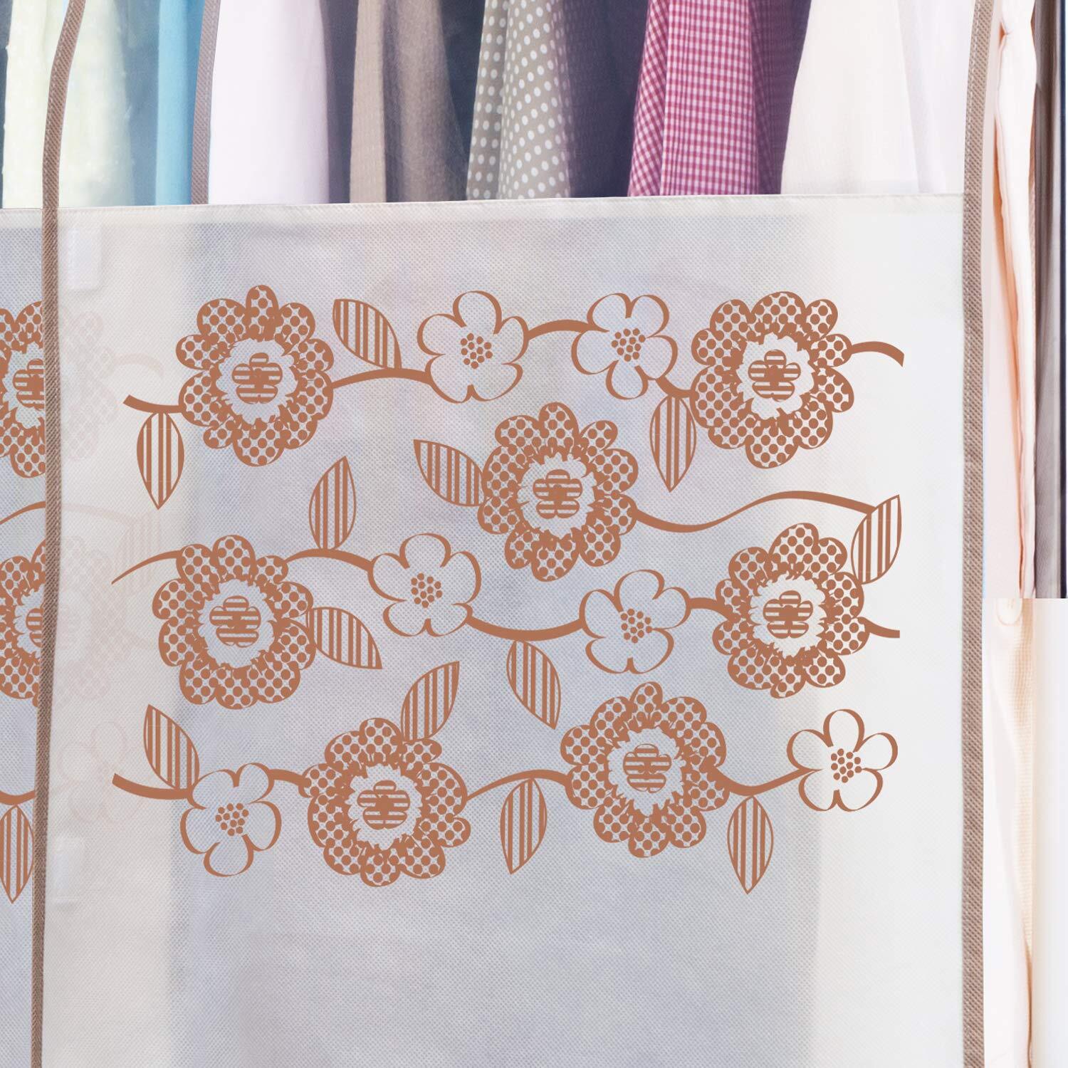 【数量限定】アストロ ハンガーラックカバー 花柄 ベージュ 幅100cm 通気性の良い不織布製 固定紐付 613-27