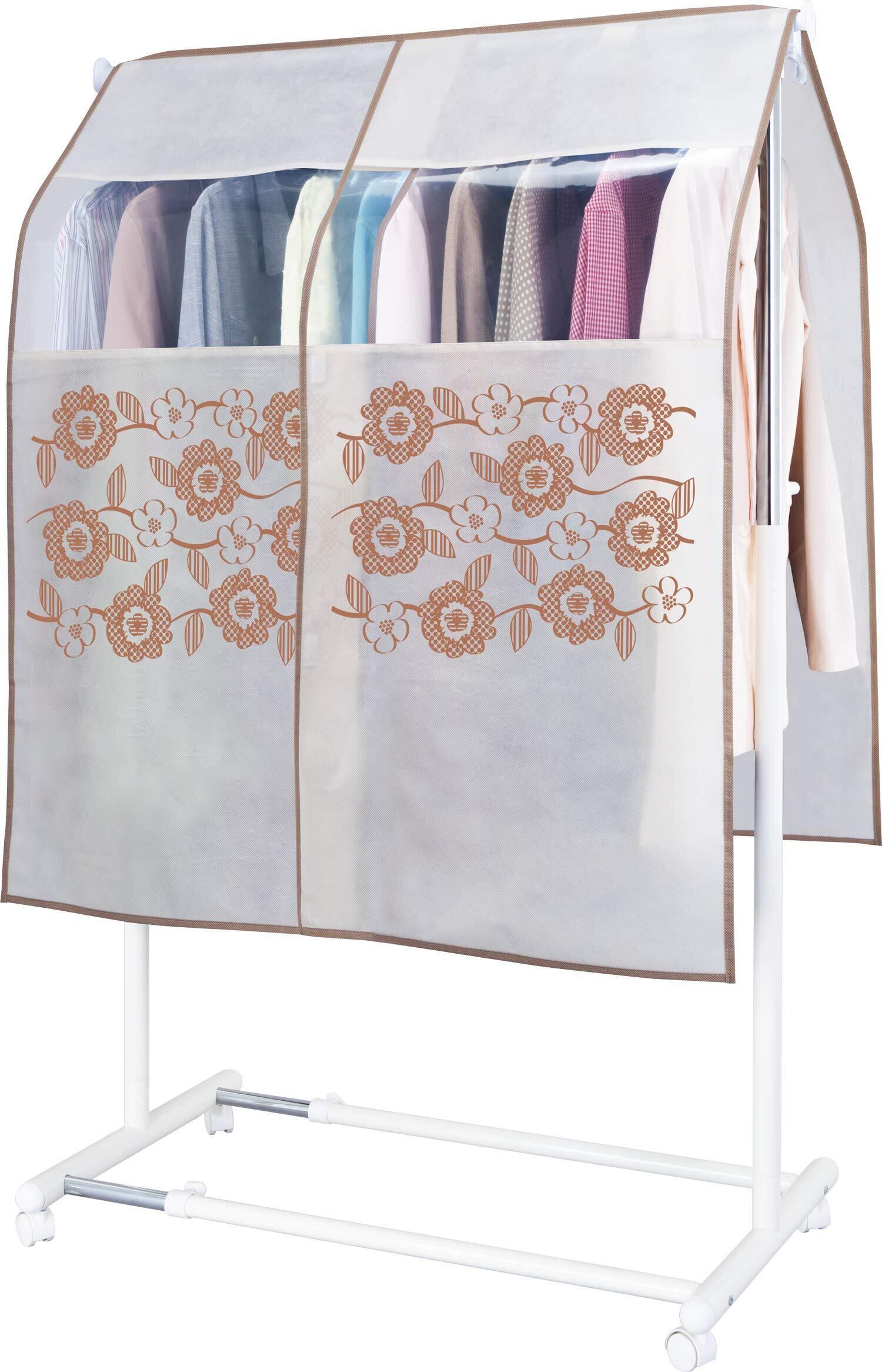 アストロ ハンガーラックカバー 花柄 ベージュ 幅100cm 通気性の良い不織布製 固定紐付 613-27