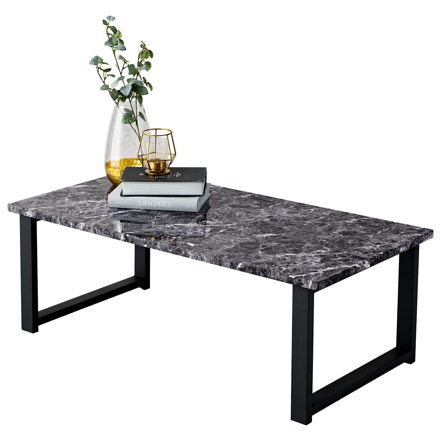 萩原(Hagihara) ローテーブル センターテーブル 机 【大理石調天板×スチール脚】 シック モダン リビング ソファテーブル 幅90 奥行45 高さ32 ブラック 黒 頑丈 LT-4394MBK