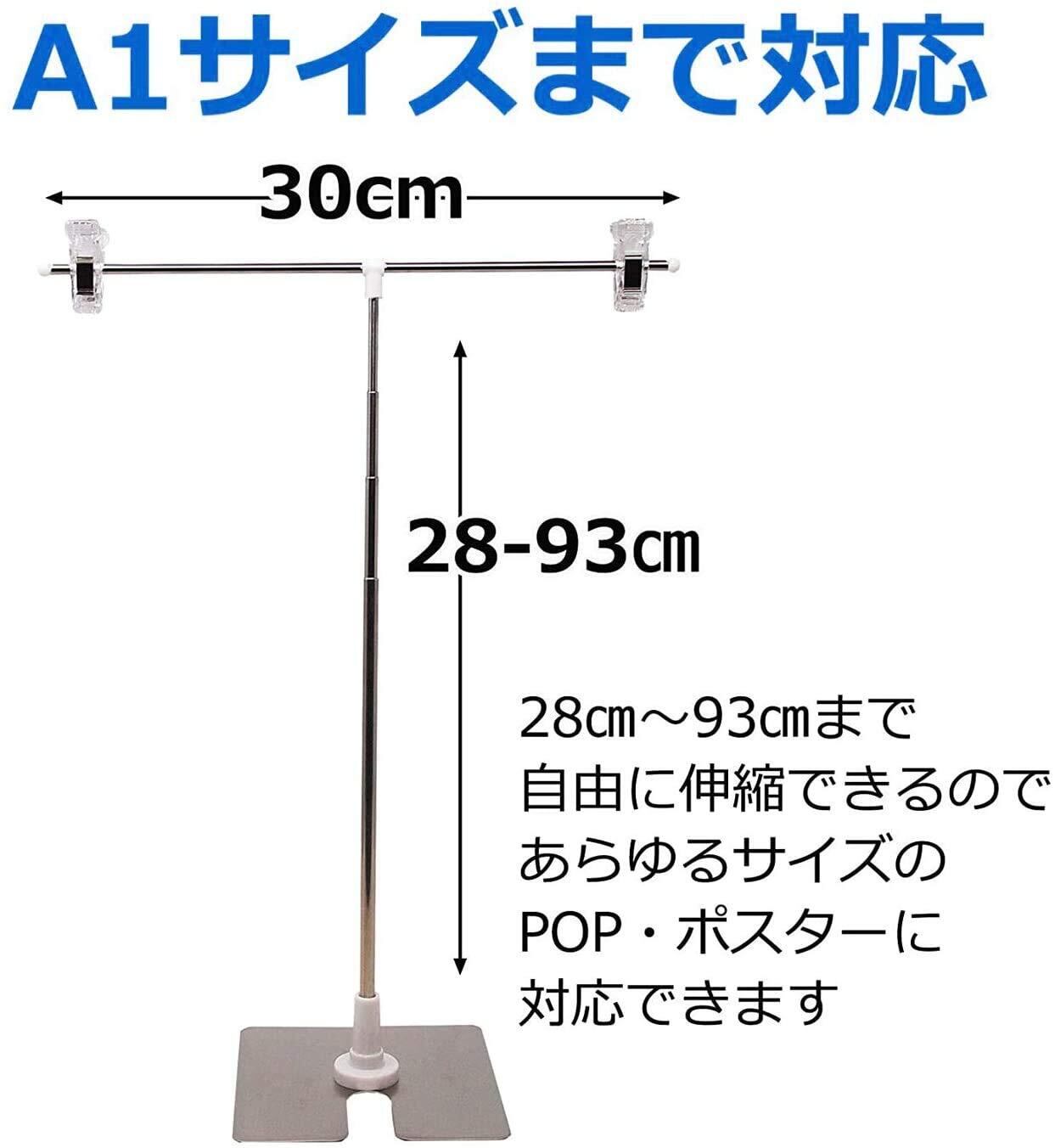 【伸縮調整可能】ポスタースタンドポールが28-93cm伸縮するので!両側の透明なクリスタルクリップは左右にスライド可能、幅30cm、用途に合わせA2/A3/A4/B2/B3/B4で使うことが出来て幅広く対応可能。11