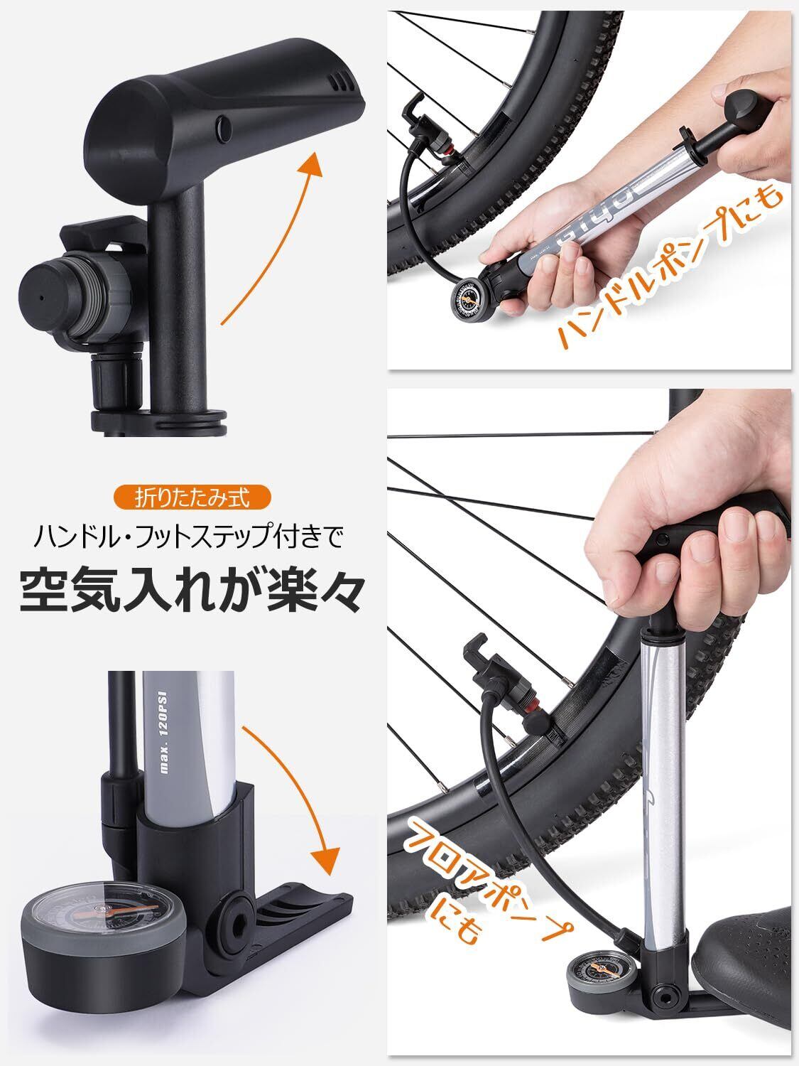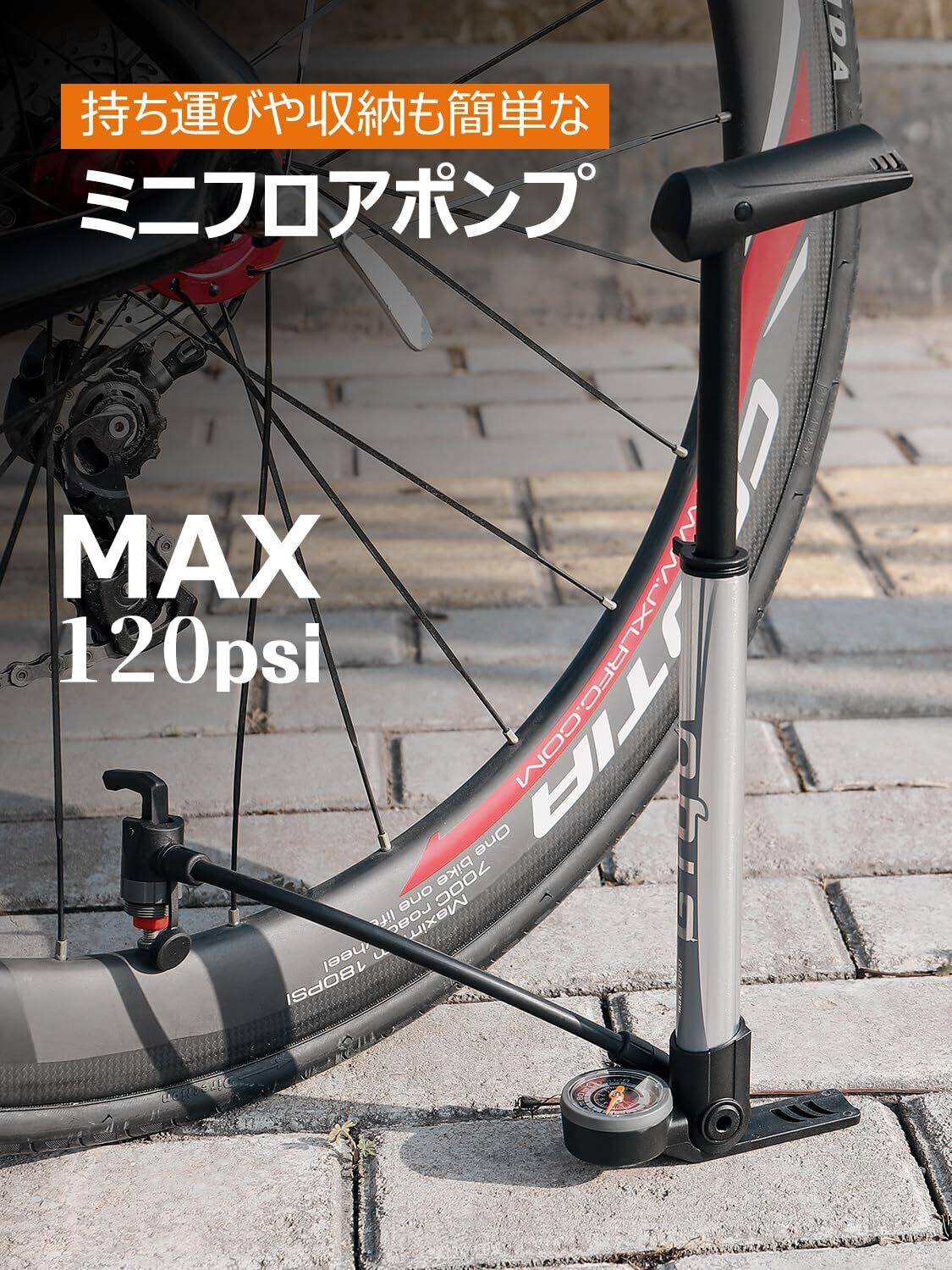 GIYO 自転車 空気入れ 携帯ポンプ 仏式 英式 米式 120psi ゲージ付き コンパクト 軽量 ミニフロアポンプ ロードバイク クロスバイク ママチャリ 各種 対応 (GM-642)