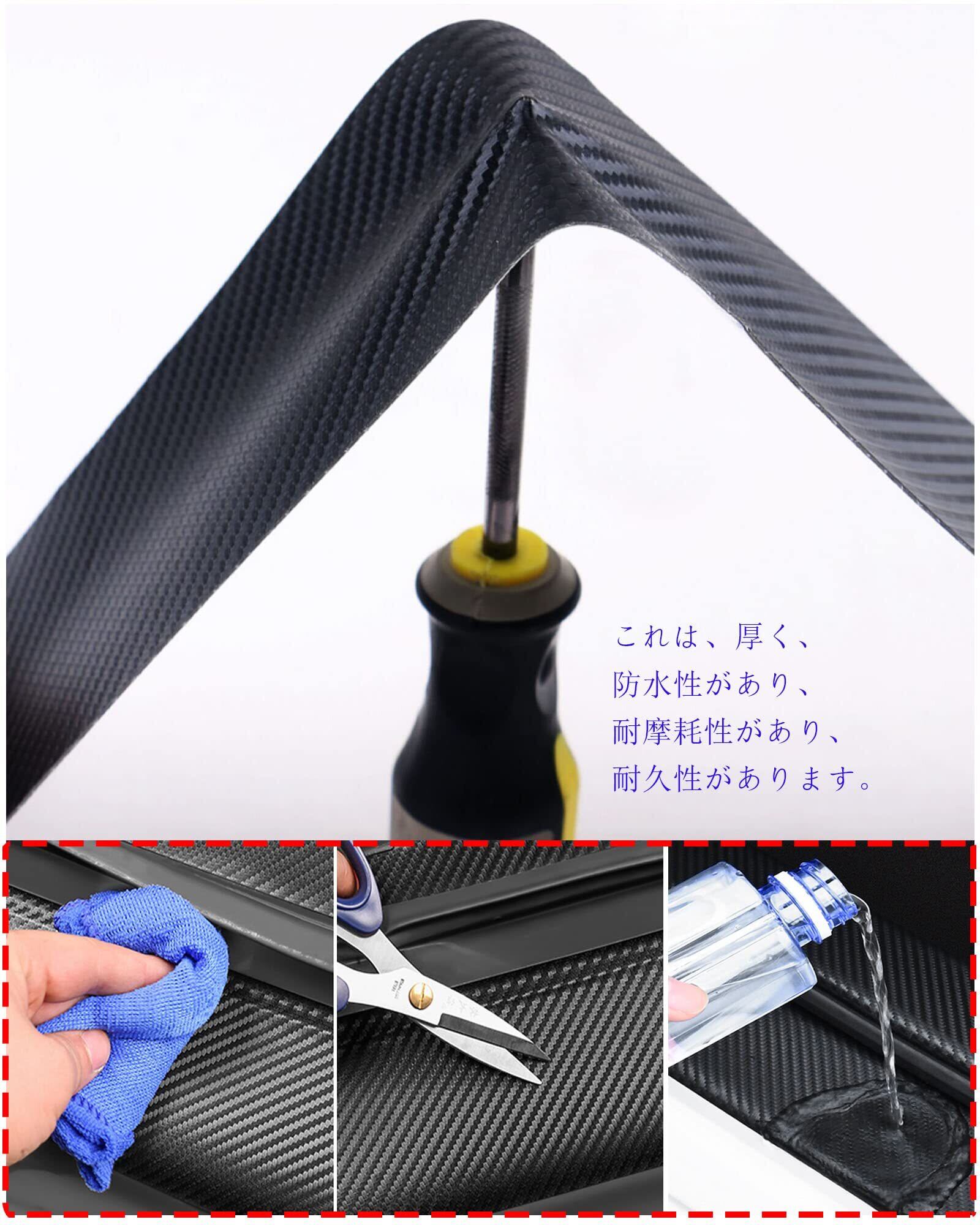 アップグレード材料:従来の材料とは異なり、高品質のカーボンファイバーレザーを使用します。これは、厚く、防水性があり、耐摩耗性があり、耐久性があります。裏面付属の専用両面テープで簡単に貼り付けできます。剥がし跡も残らない設計です、塗装を傷つけません。