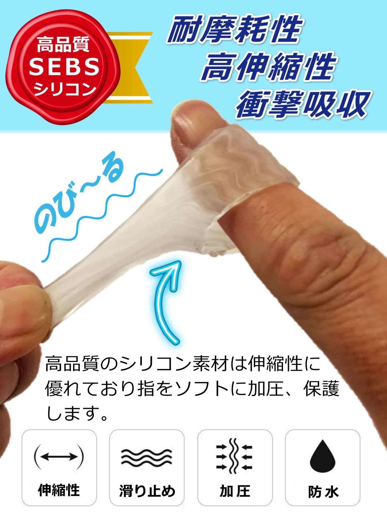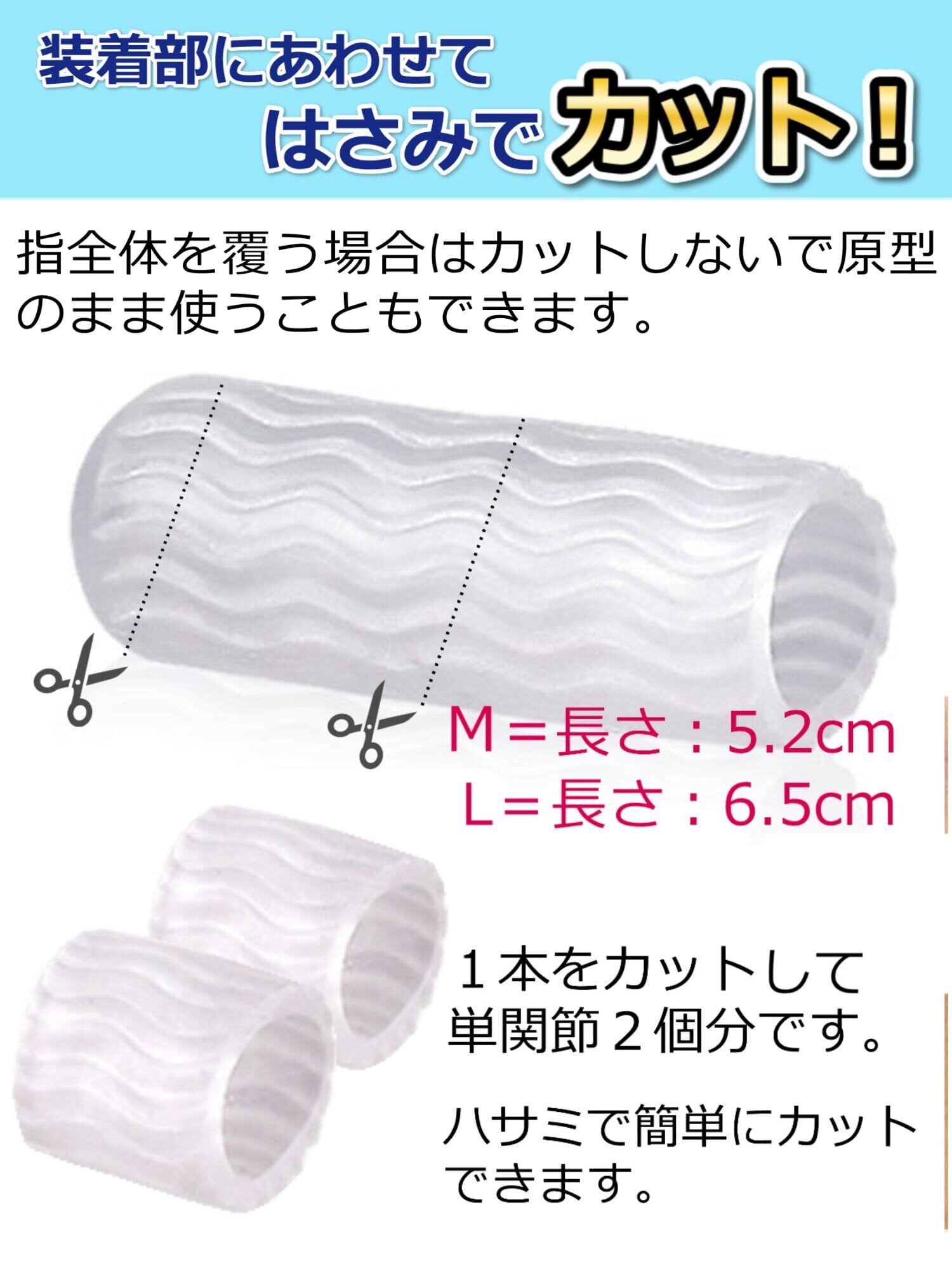 ?はさみでカット:カバーしたい指に合わせて、1本を半分にカットして使用したり、カットせず指全体をカバーすることも出来ます。ゆびの状態にあわせてハサミでカットできるので、とても便利です。手の指だけでなく「足のゆび」に装着することもできます。