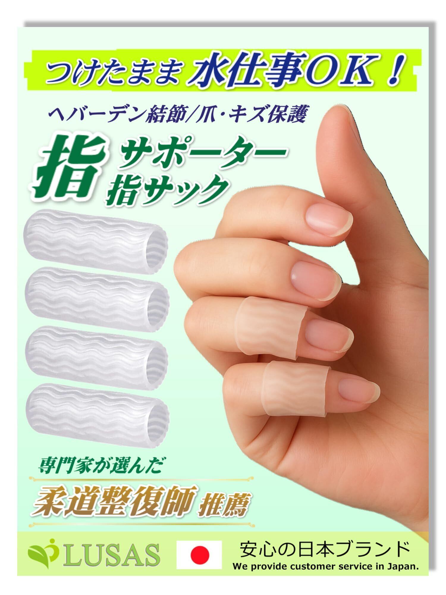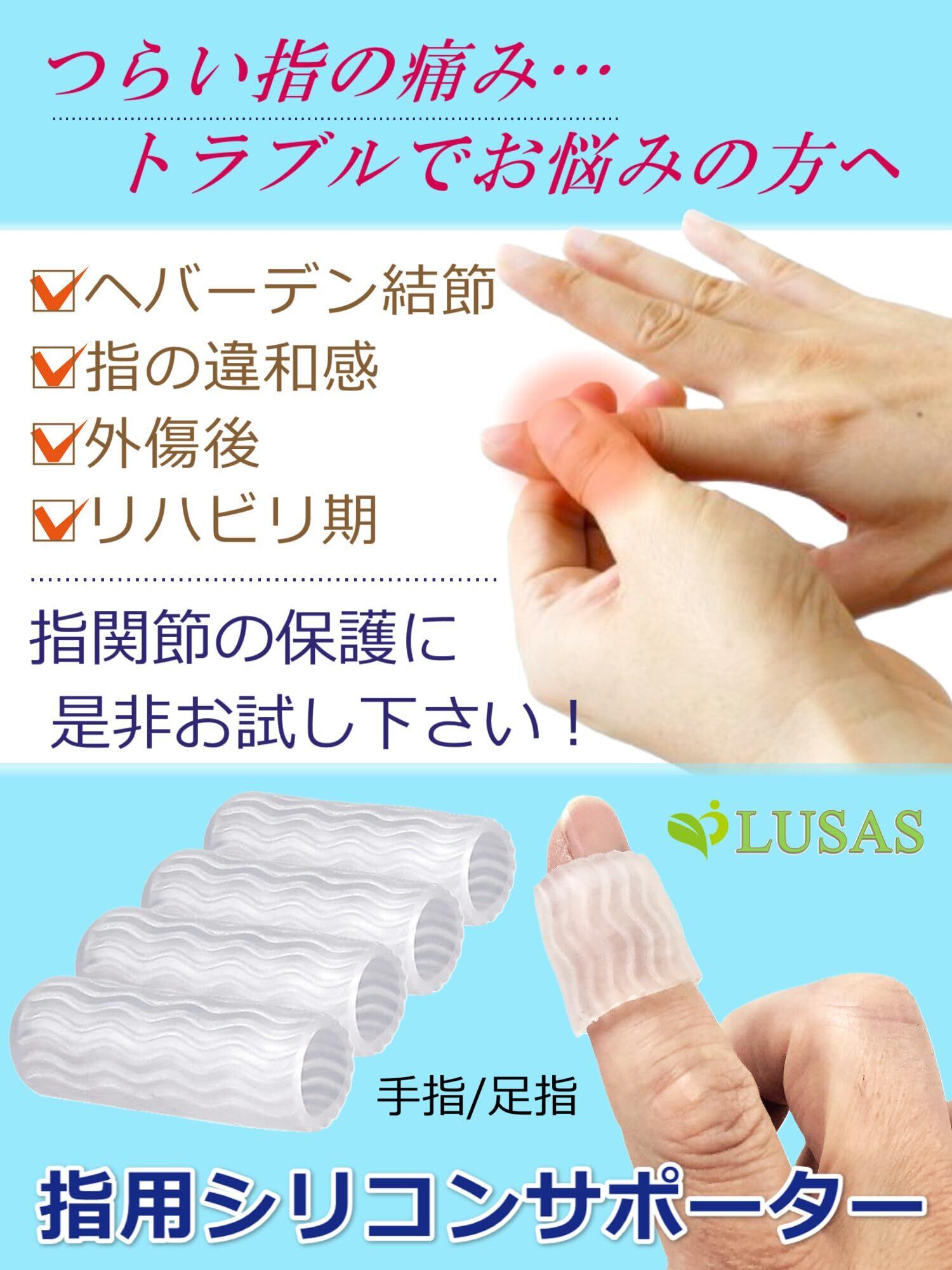 【新着商品】【柔道整復師推奨】LUSAS 指サポーター 指サック ヘバーデン結節【つけたまま 水仕事OK】シリコン 指先保護サック 指先保護サポーター 家事 事務 医療用 4個セット 手指 指用 (L)