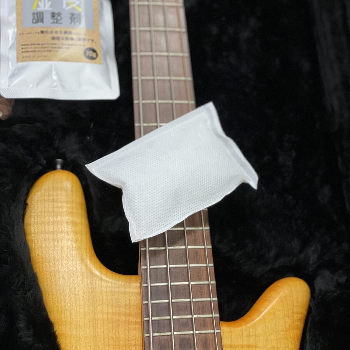 BaboonはBass Shop Geek IN Boxがプロデュースするギター関連のアクセサリーブランドです。 本商品は新たに開発した、ギター専用の湿度調整剤です。 ギターにとって理想的案湿度は約50〜60%と言われており、過度な乾燥や湿気はギターに悪影響を与えます。 東京においては、夏には湿度平均が70を超え、冬には50を下回ります。 何も対策をしなければ、湿度の影響を受けてコンディションが変化してしまうことは防げません。 本製品は湿度が高い時には吸湿、低い時には放湿を繰り返す機能を持ちます。 これによって保管ケース内の湿度をコントロール、ギターの状態悪化を防ぎます。 長期間入れっぱなしにしても出来るだけ機能が長持ちするよう、内容量は70gと大きめにしました。 理論的には半永久的に使えますが、調整剤の目のつまりなどが起こりうるので、1 年間ほどを目安として交換をおすすめいたします。 大切なギター、ベースを守るためのひとつの方法として、いかがでしょうか。