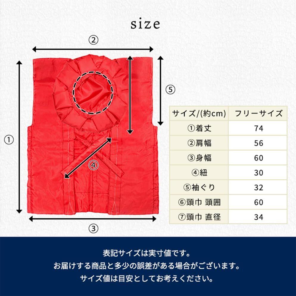 [サイズ]:男女兼用フリーサイズ(ちゃんちゃんこは前紐で、頭巾は紐で調整できます。)