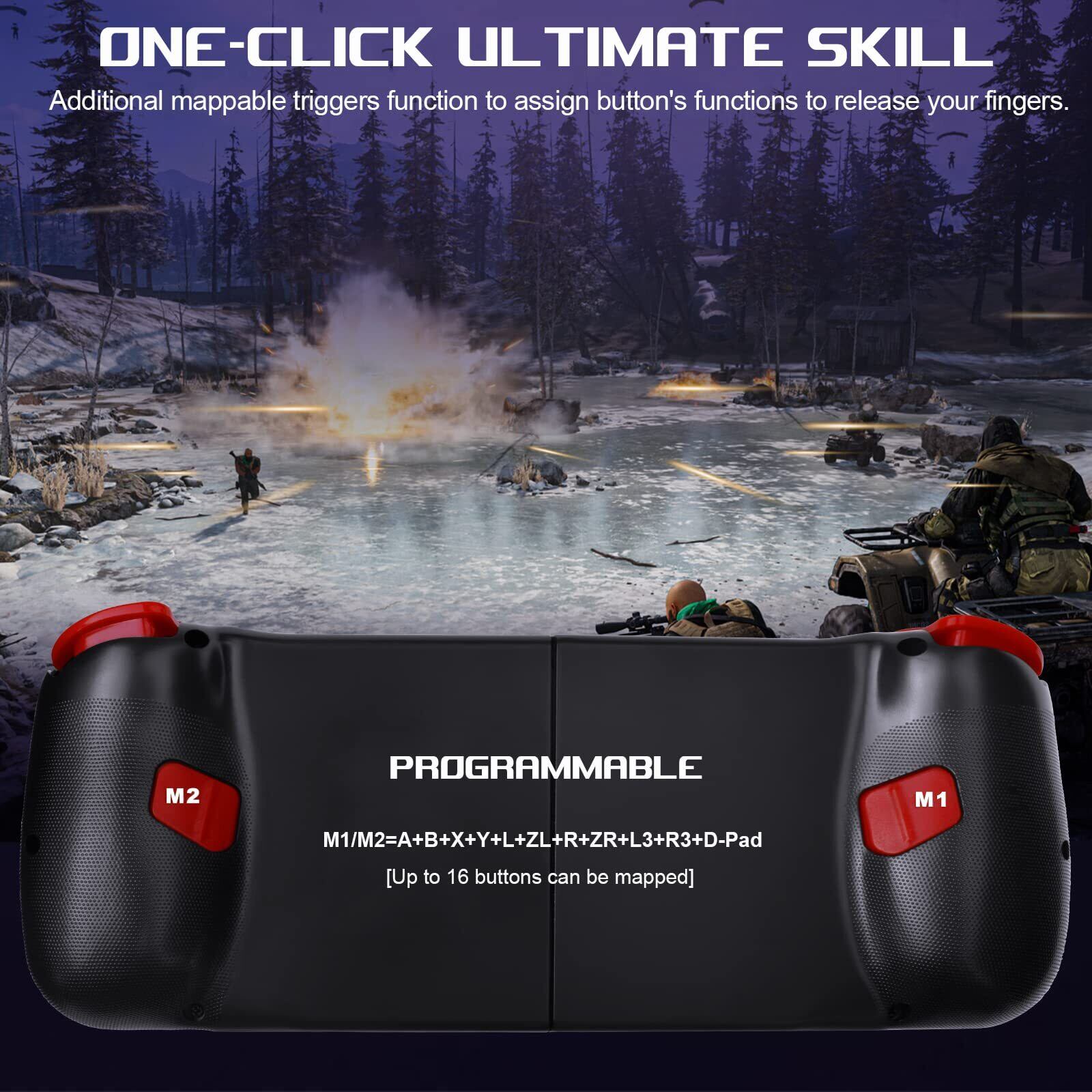 ??【長時間の使用が可能】スマホコントローラーはBluetooth 5.0のワイヤレス伝送で、接続距離は最大8mまで遅延なく接続できます。 フル充電で最大20時間連続使用可能な充電池を内蔵し、安全で安定した使用が可能です。