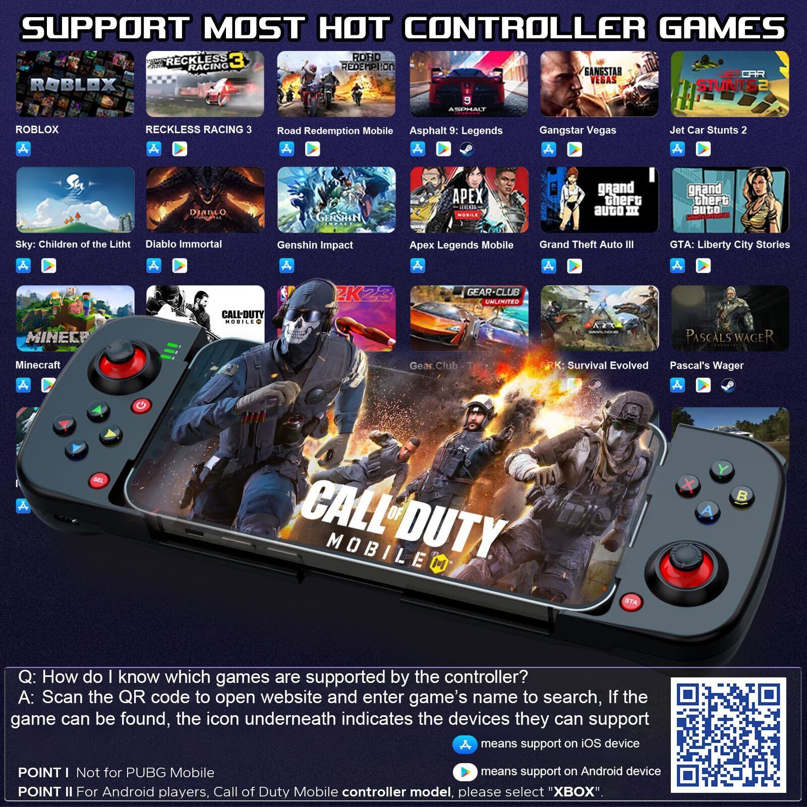 Megadreamワイヤレスゲームコントローラー iOS/Android/PC用ゲームパッド スライド式伸縮ホルダー型 Bluetooth接続 低遅延 MFI対応ゲーム IOS13.4/Android 6.0/Win 7以上にサポート