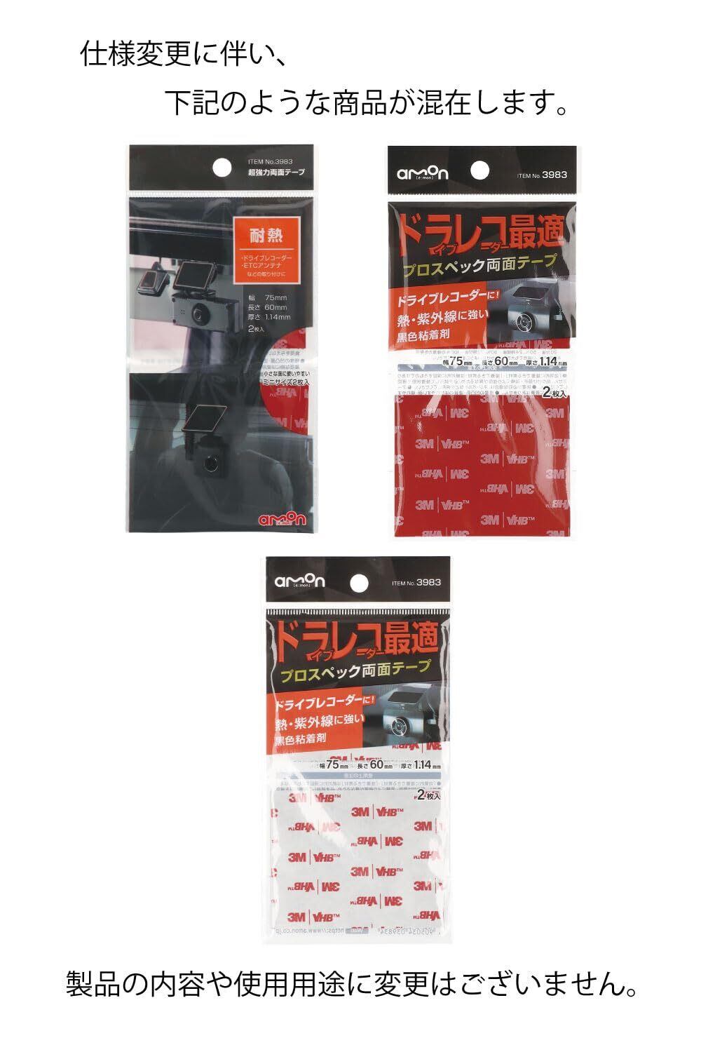 【特価セール】エーモン(amon) 超強力両面テープ(プロスペック) ドライブレコーダーの接着に 黒 幅75mm×長さ60mm×厚さ1.14mm 2枚入 自動車用 3983