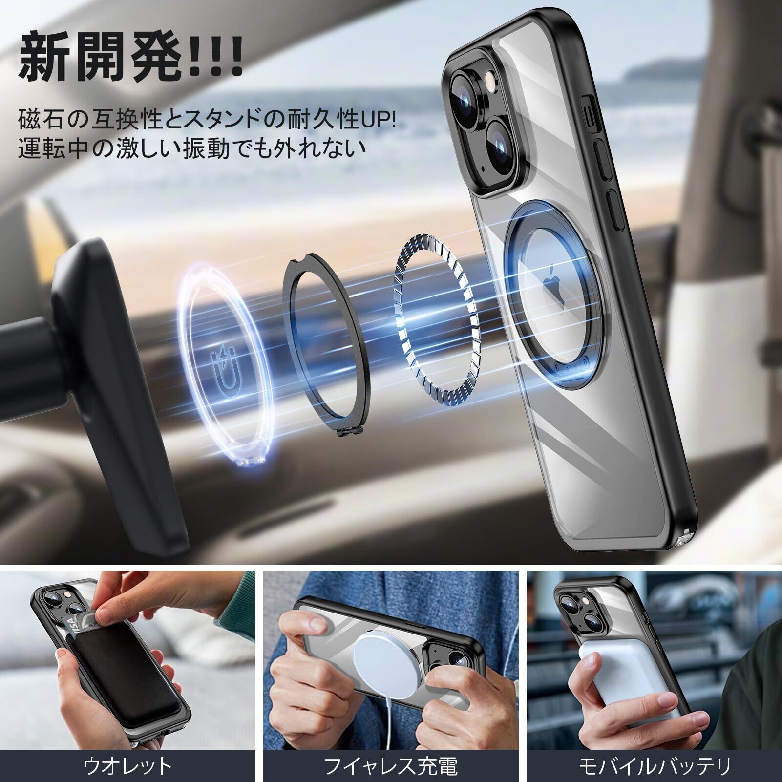 【MagSafe対応&超磁力】iPhone 15用ケース。ケース内部には、360度全周に埋め込まれた一体型磁石があり、強力な吸着力でしっかりと固定しながら充電が可能です。MagSafeアクセサリーも確実にケースに吸着します!【①本製品はMagSafeデバイスに対応していますが、Magsafeウォレット使用時に「探す」機能は表示されません;②QIワイヤレス充電には対応しておりませんので、ご購入前にご検討いただければ幸いです。】